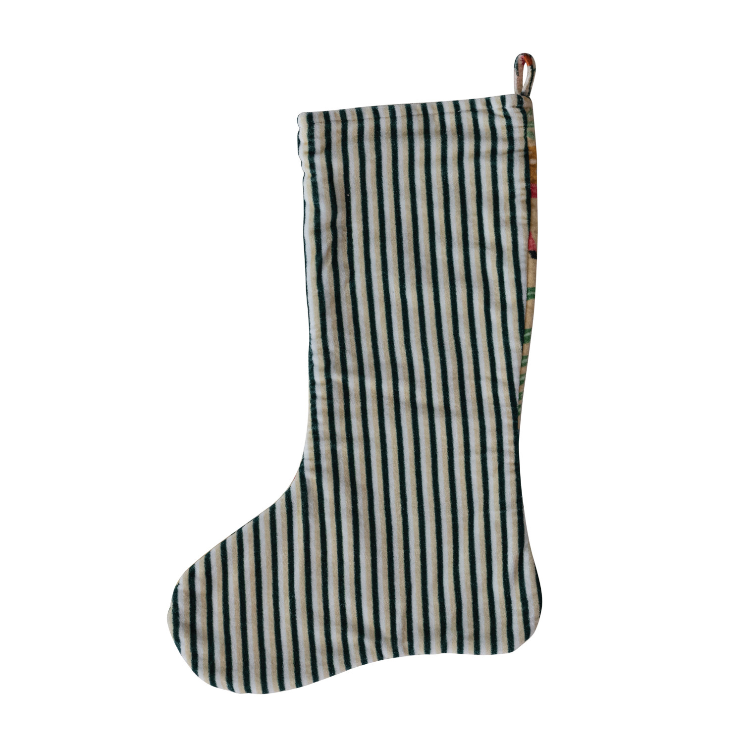 Catalog Name: 20"H Cotton Velvet Printed Stocking w/ Animals, Seasonal Botanicals & Striped Back, Multi Color ©