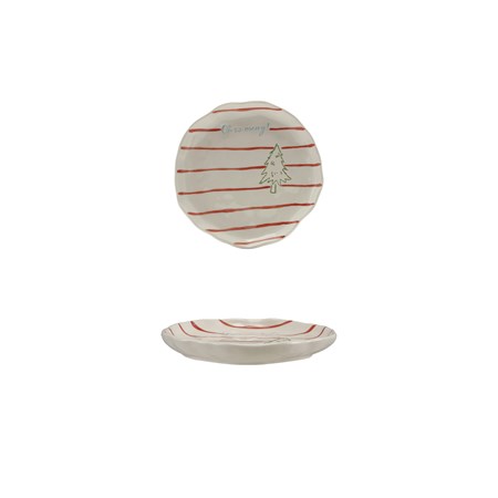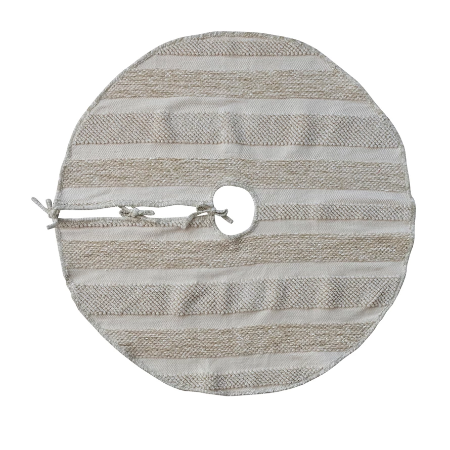 48" Round Woven Cotton & Fabric Blend Striped Tree Skirt with Embroidery & Ties