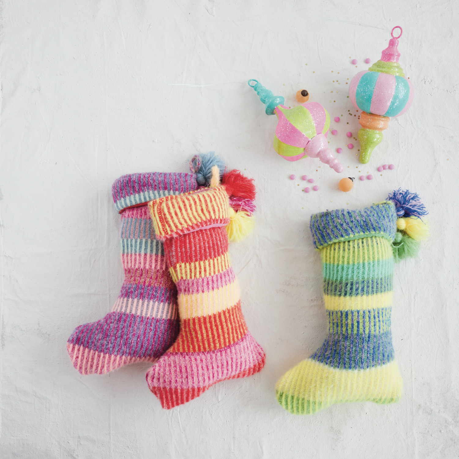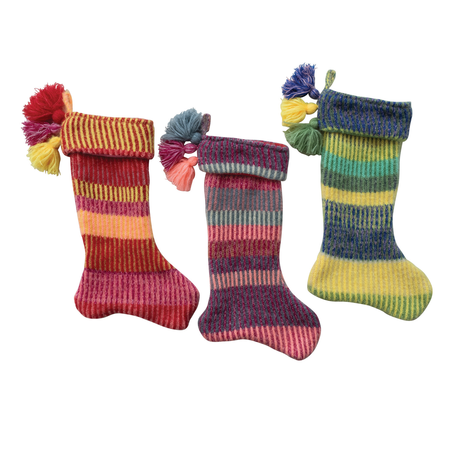 Catalog Name: 20"H Fabric Stocking w/ Stripes & Tassels, Multi Color, 3 Styles