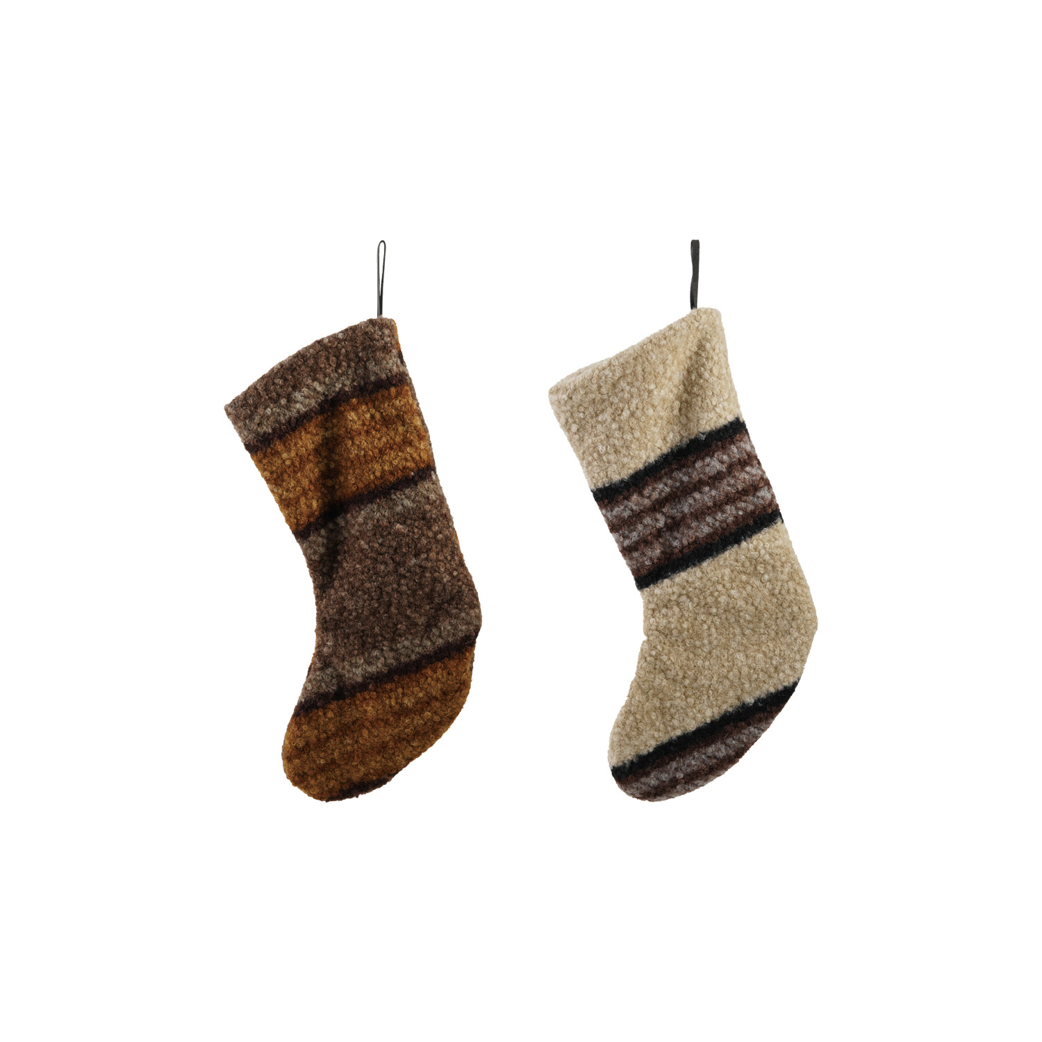 Fabric Faux Sherpa Stocking with Stripes, 2 Styles