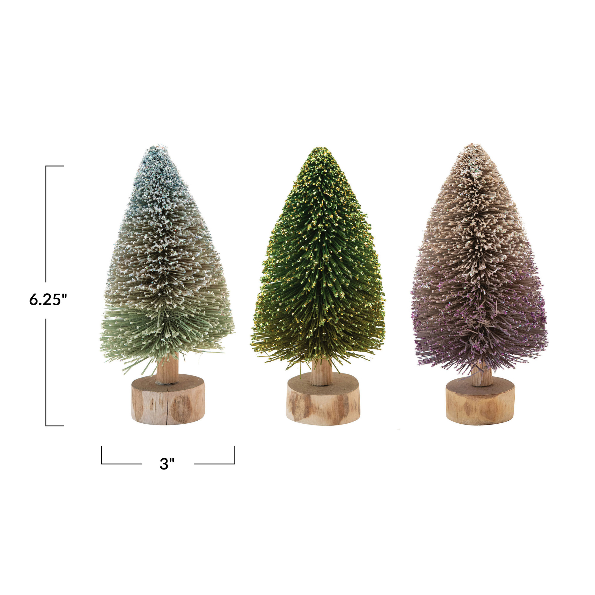 Catalog Name: 3" Round x 6-1/4"H Sisal Bottle Brush Tree w/ Wood Base, Ombre, 3 Colors