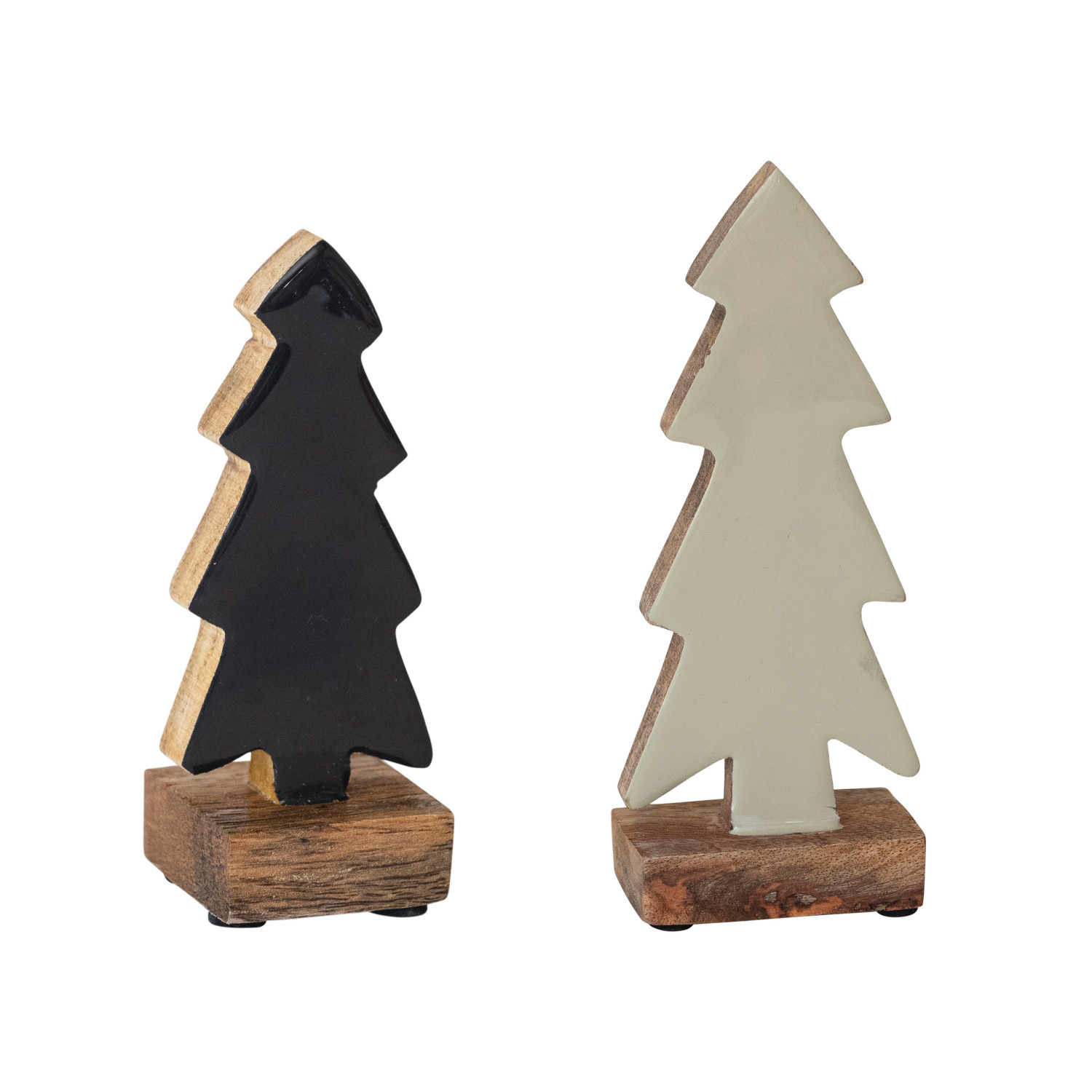 Catalog Name: 4-1/2"H - 6-3/4"H Carved Enameled Mango Wood Tree on Wood Base, 2 Colors