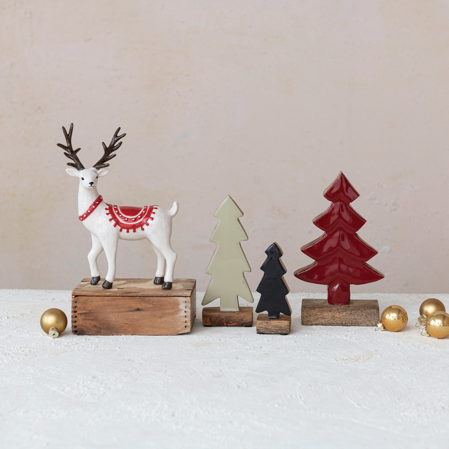 Carved Enameled Mango Wood Tree on Wood Base, 2 Colors