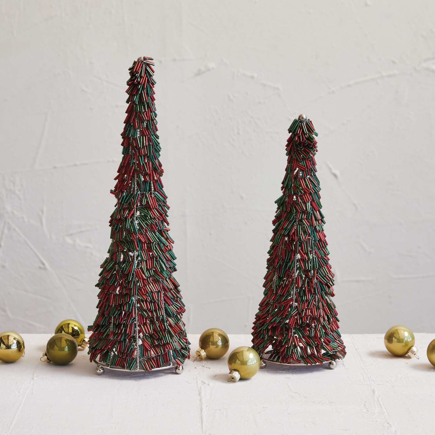 Catalog Name: 3-1/2" Round x 10-3/4"H Metal & Glass Beaded Christmas Tree, Red & Green