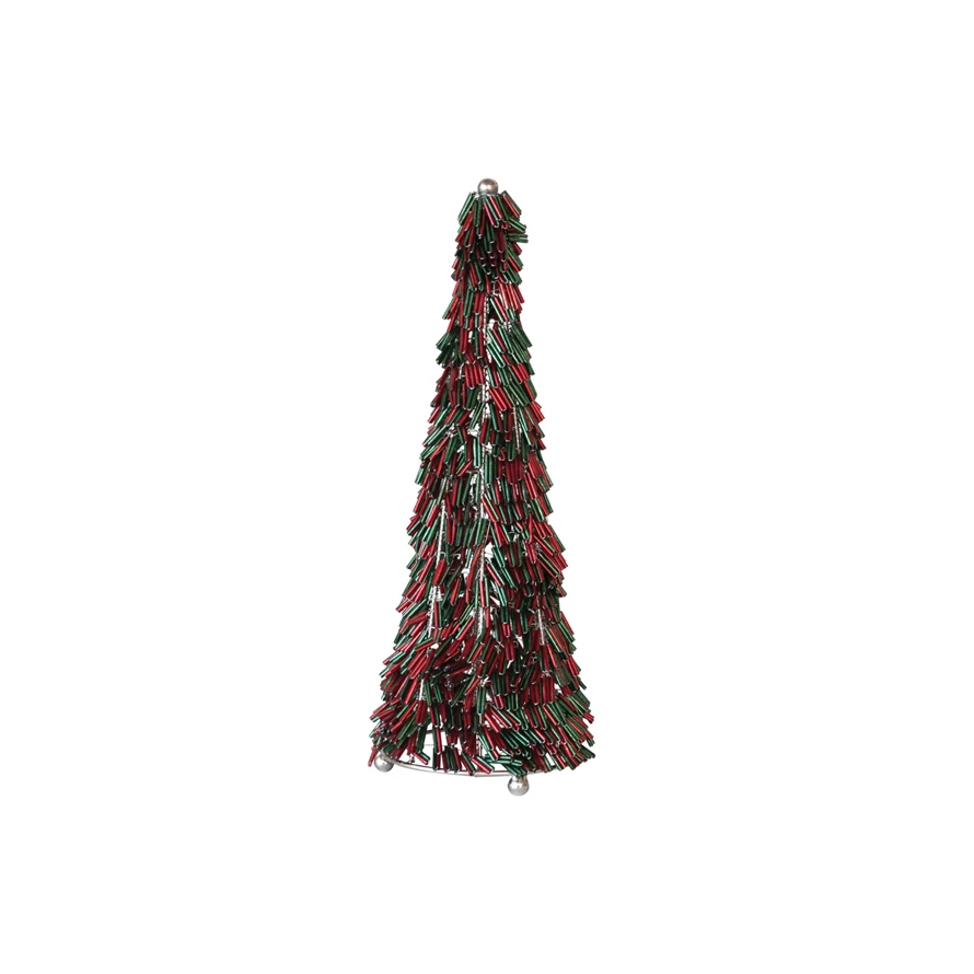 Metal & Glass Beaded Christmas Tree, Red & Green