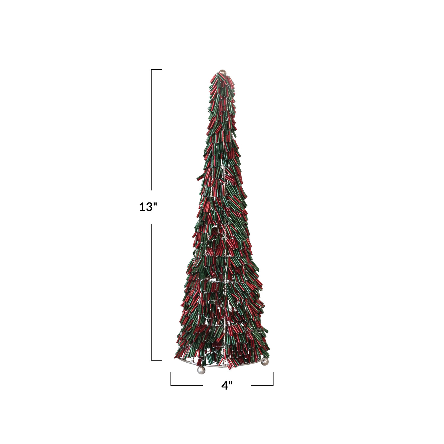 Catalog Name: 4" Round x 13"H Metal & Glass Beaded Christmas Tree, Red & Green
