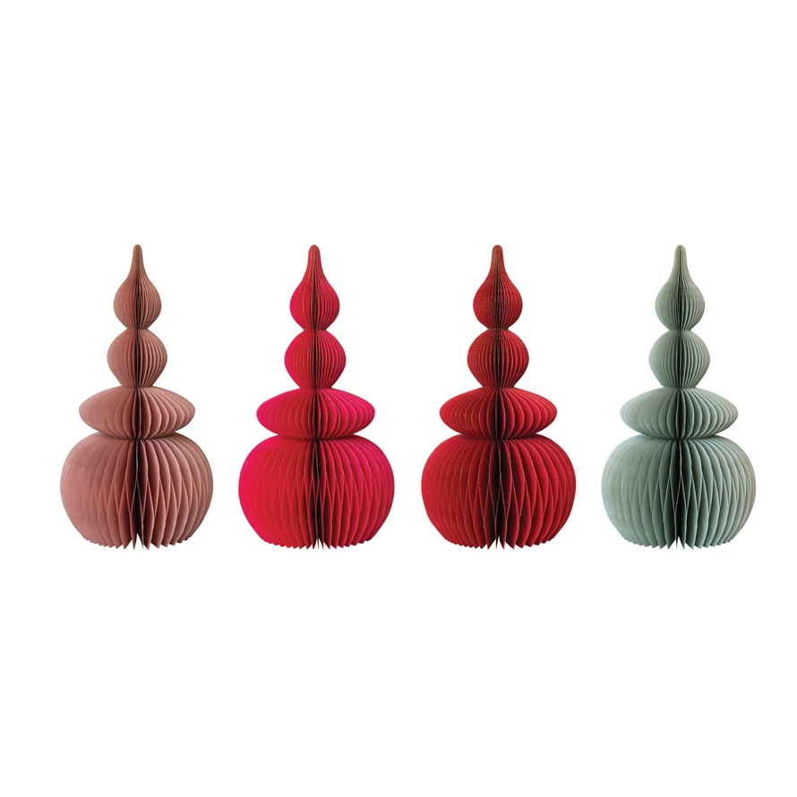 This set of 4 large paper folding honeycomb trees with a gold glitter edge and multicolor design is a festive and fun addition to the home. Made from lightweight, eco-friendly paper and magnet, these trees come in different colors like red, pink, brown, or green, adding variety to the collection. Each tree has a gold glitter edge for added sparkle. Measuring 14 inches in diameter and 26 inches in height, these trees are easy to use, folding flat for storage or unfolded for display. They come in various sizes and colors, making them a convenient and festive addition to the home. This set of 4 large paper folding honeycomb tree with gold glitter edge that feature multicolor and a round shape. These honeycomb trees are easy and convenient to use, as they can be folded flat for storage or unfolded for display, and they come in different sizes and colors. The honeycomb tree collection features a variety of colors, including red, pink, brown, and green, and a gold glitter edge for added style and contrast, enhancing the overall aesthetic appeal.
