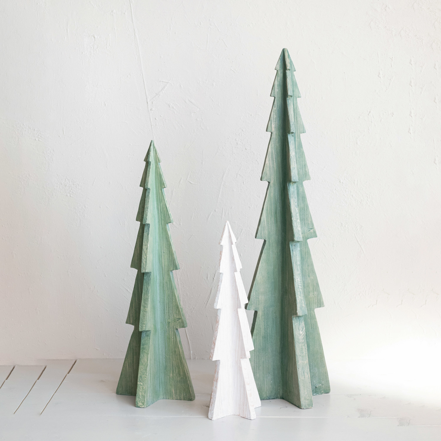This white magnesia tree with a wood finish is a beautiful and convenient way to decorate for the holidays. It features a magnesia tree with a white color and a wood finish that creates a sleek and modern effect, making it look like a minimalist tree. The tree has a smooth and glossy texture that is pleasant to touch and look at. The tree is ideal for displaying on a floor, where it can add a touch of sophistication and simplicity to any space. The tree is made of sturdy and durable magnesia, making it a great choice for holiday decoration. It measures 3.5 inches in diameter and 26.75 inches in height, making it a noticeable and attractive centerpiece. Elevate the holiday decor with this eye-catching Christmas tree, adding both style and a touch of whimsy. A magnesia tree with a white color and a wood finish that creates a sleek and modern effect. A stylish and elegant addition to the holiday decor, this tree adds a touch of sophistication and simplicity to any space. Ideal for displaying on a floor, this tree can be used as a standalone piece or paired with other items.