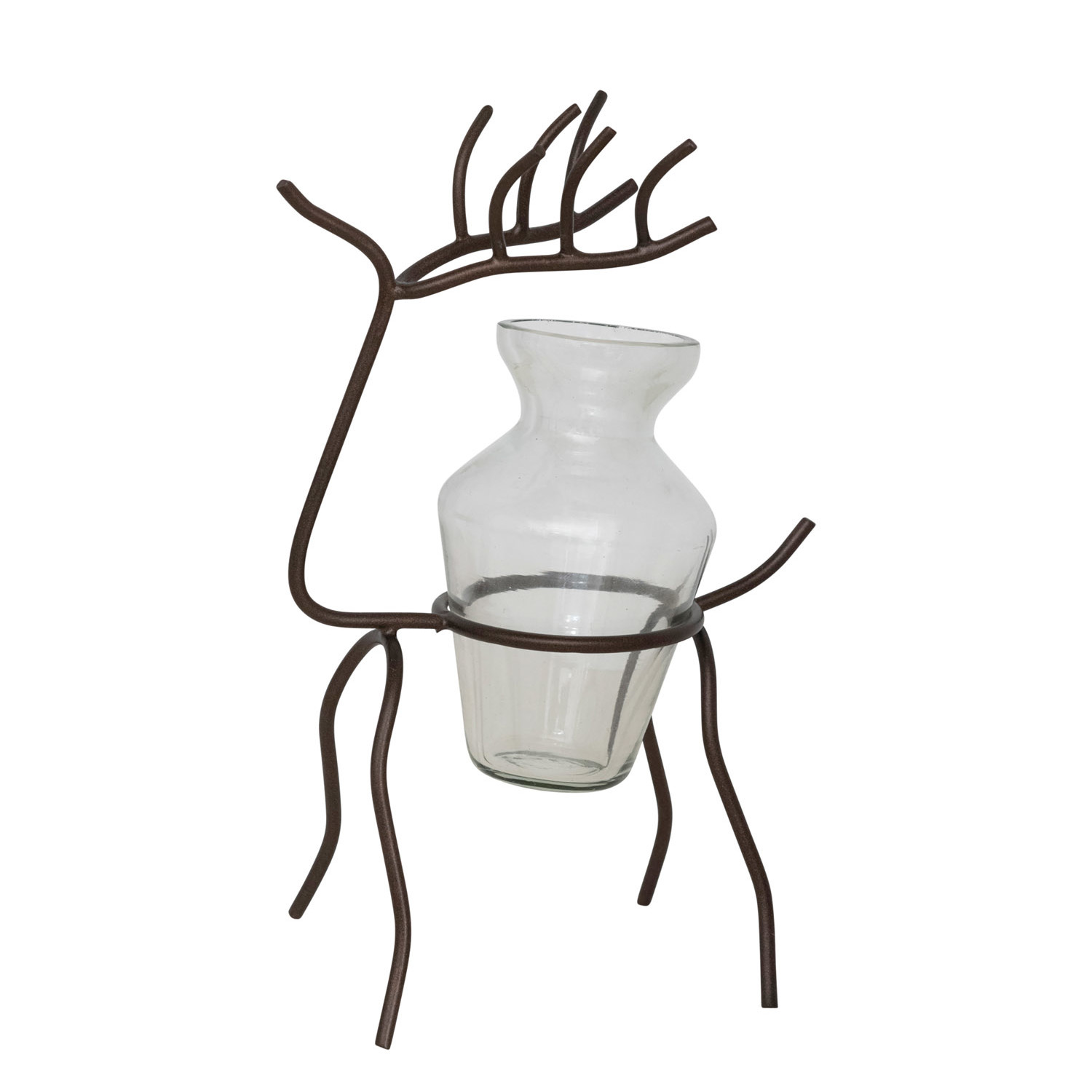 Catalog Name: 5"L x 3-1/2"W x 8-1/2"H Glass Vase with Metal Deer Stand, Black