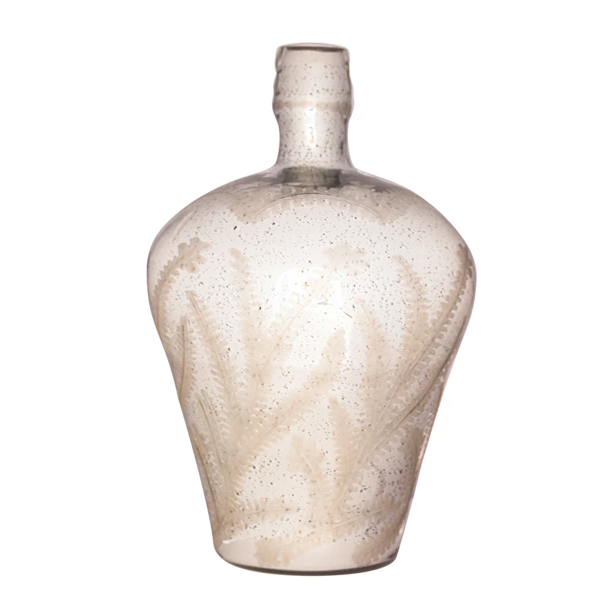 Catalog Name: 9" Round x 14-1/4"H Etched Mercury Glass Vase, Antique Silver Finish