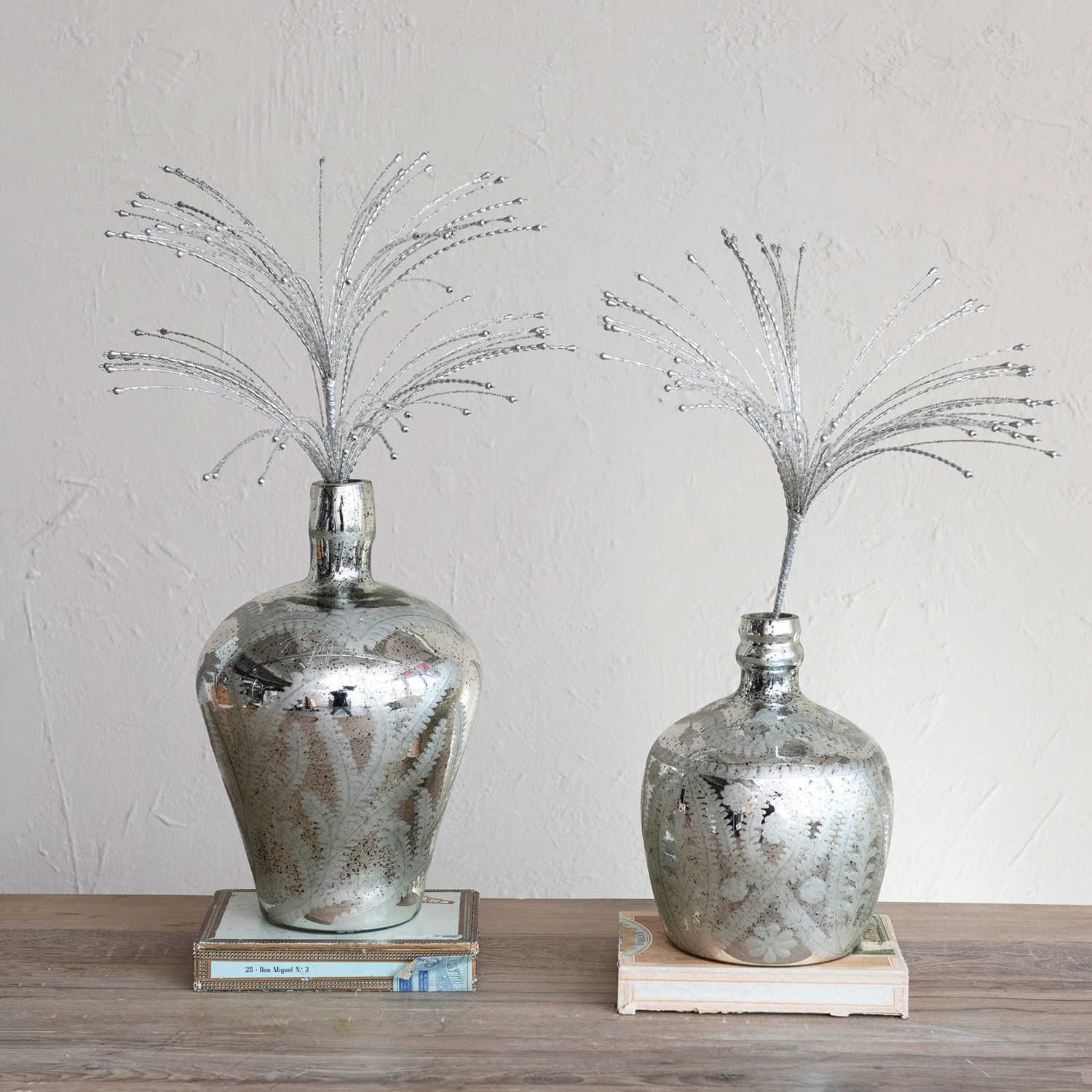 Etched Mercury Glass Vase, Antique Silver Finish