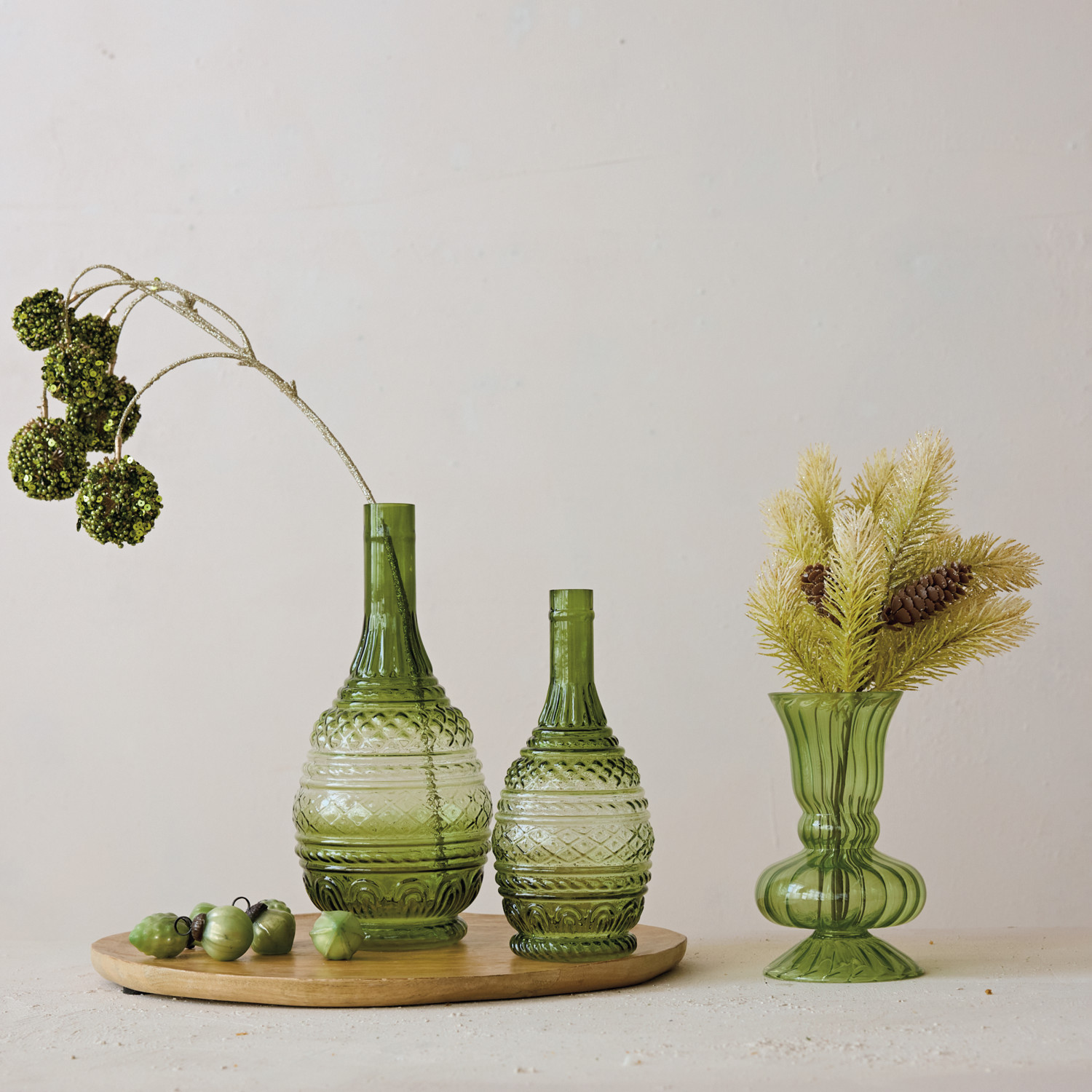 Hand-Blown Fluted Glass Vase, Green