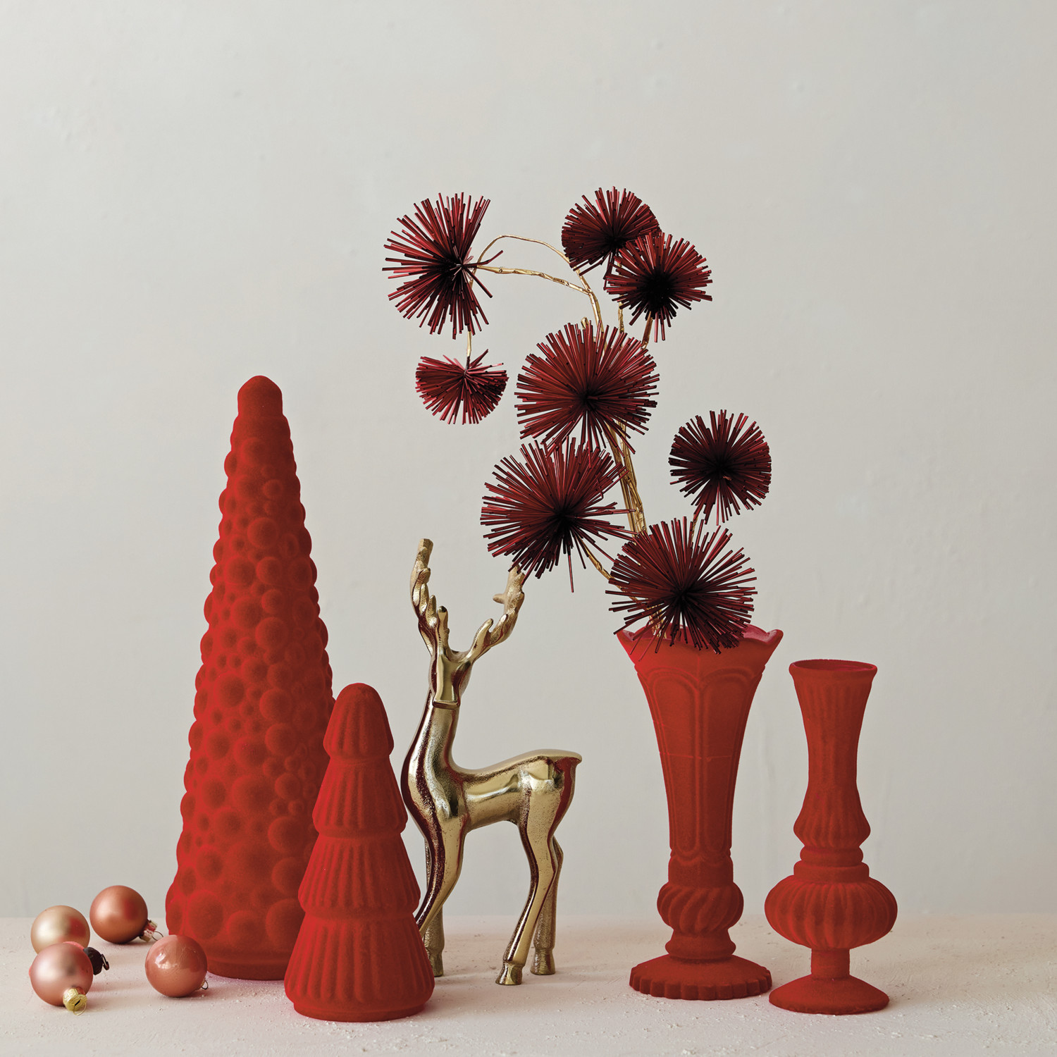 Embossed Flocked Glass Footed Vase with Scalloped Rim, Red