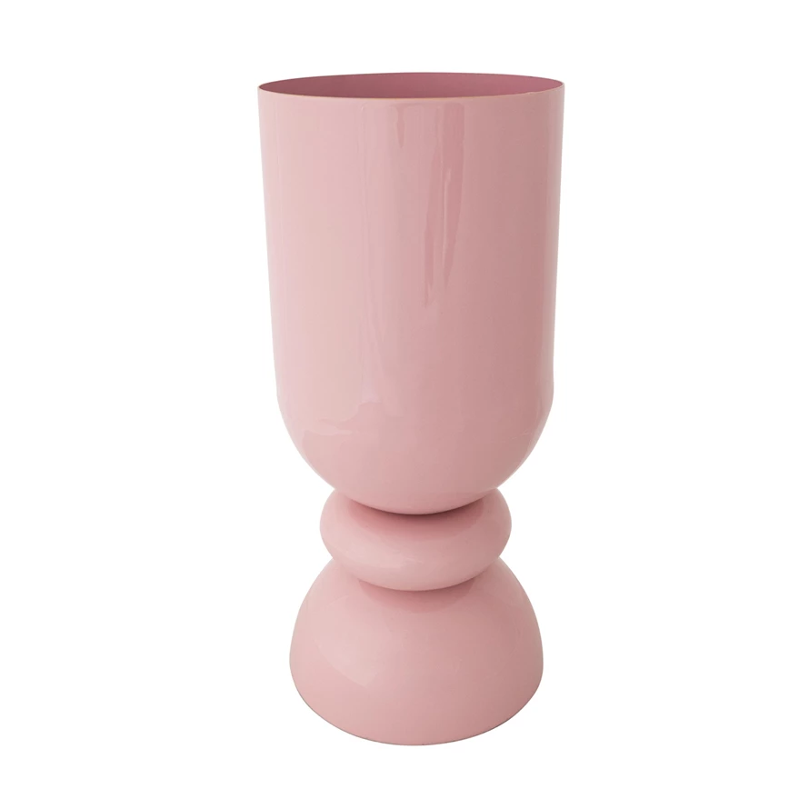 Catalog Name: 6" Round x 13-1/2"H Enameled Metal Footed Vase, Pink