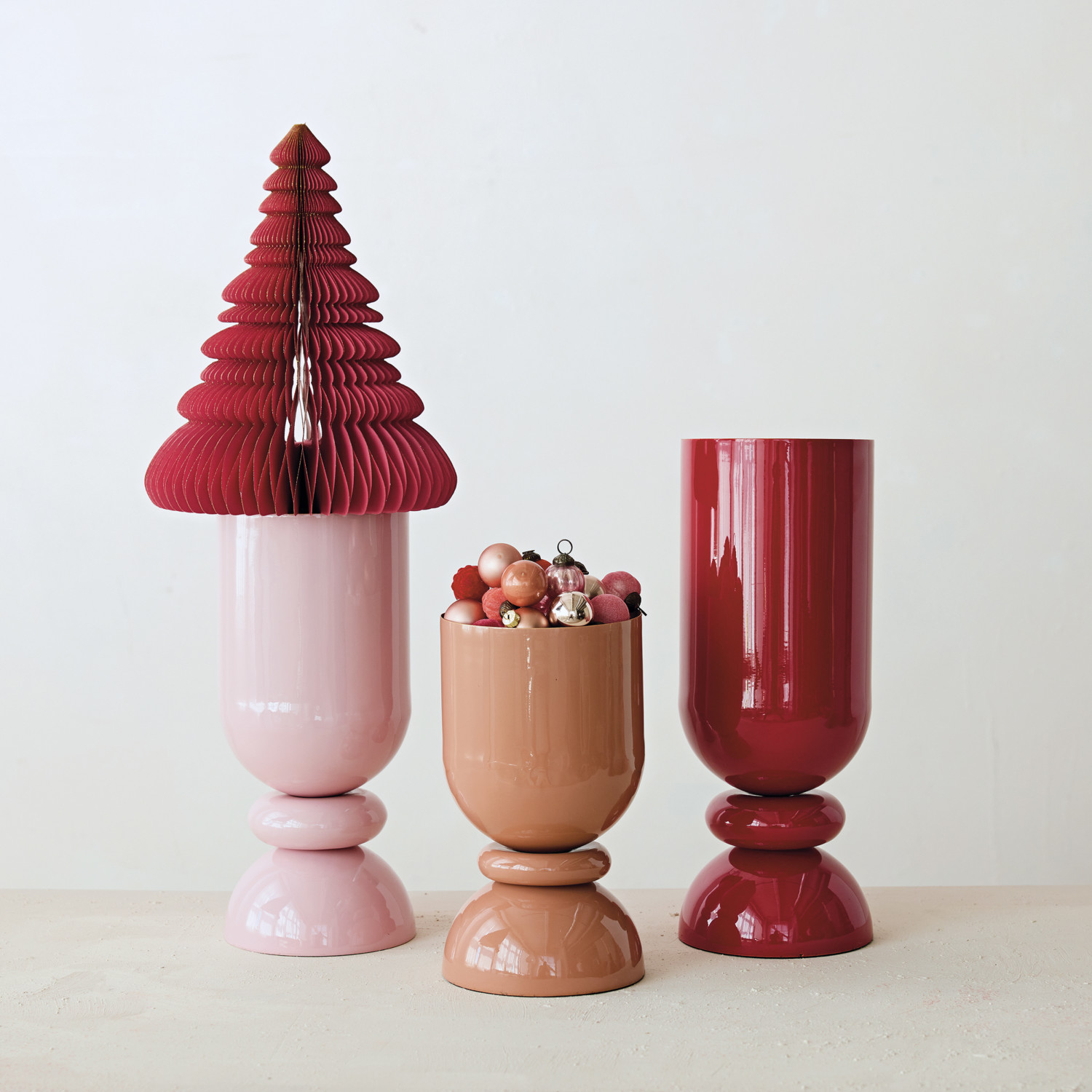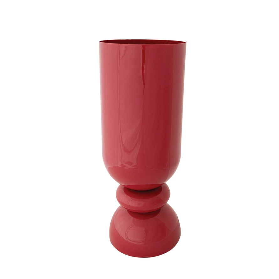 Catalog Name: 6" Round x 15-1/2"H Enameled Metal Footed Vase, Cranberry Color