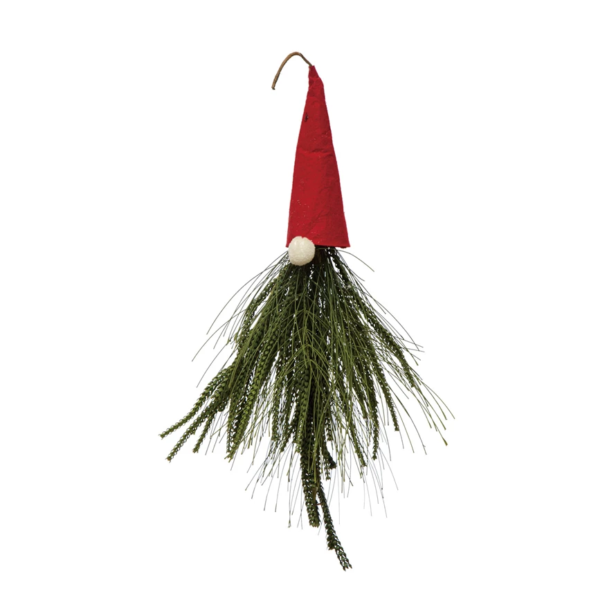 Catalog Name: 10"W x 21"H Faux Pine and Fabric Gnome Wall Hanging, Red