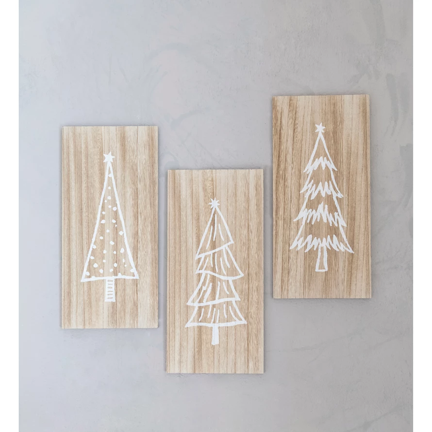 Catalog Name: 8-1/2"W x 18"H MDF Wall Décor w/ Christmas Trees, Natural & White, 3 Styles (Hangs or Sits)
