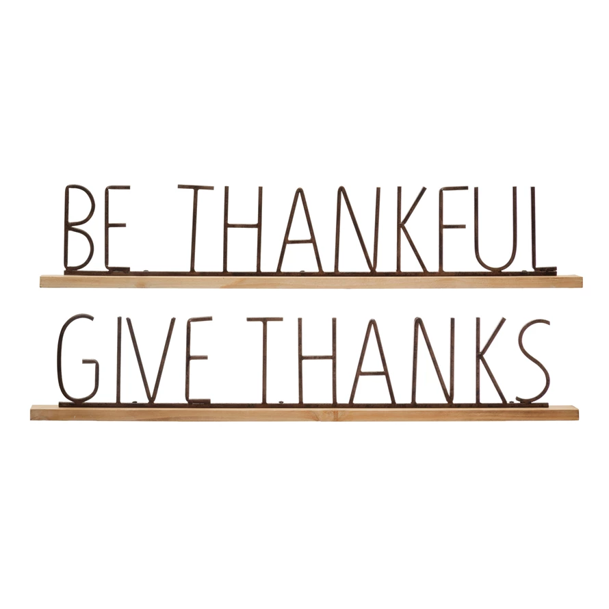 Catalog Name: 31-1/2"L x 5-3/4"H Metal & Wood Mantel Sign "Be Thankful/Give Thanks", 2 Styles