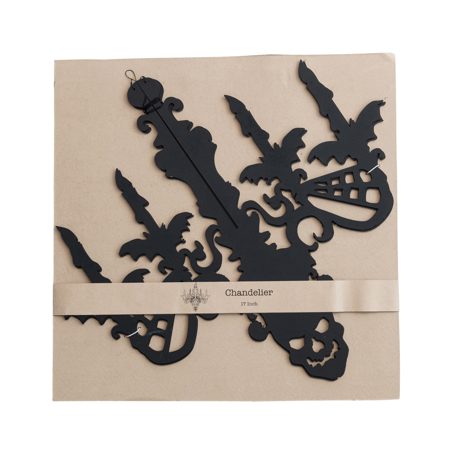 Hanging Interlocking MDF Chandelier with Bats & Spider Webs, Black