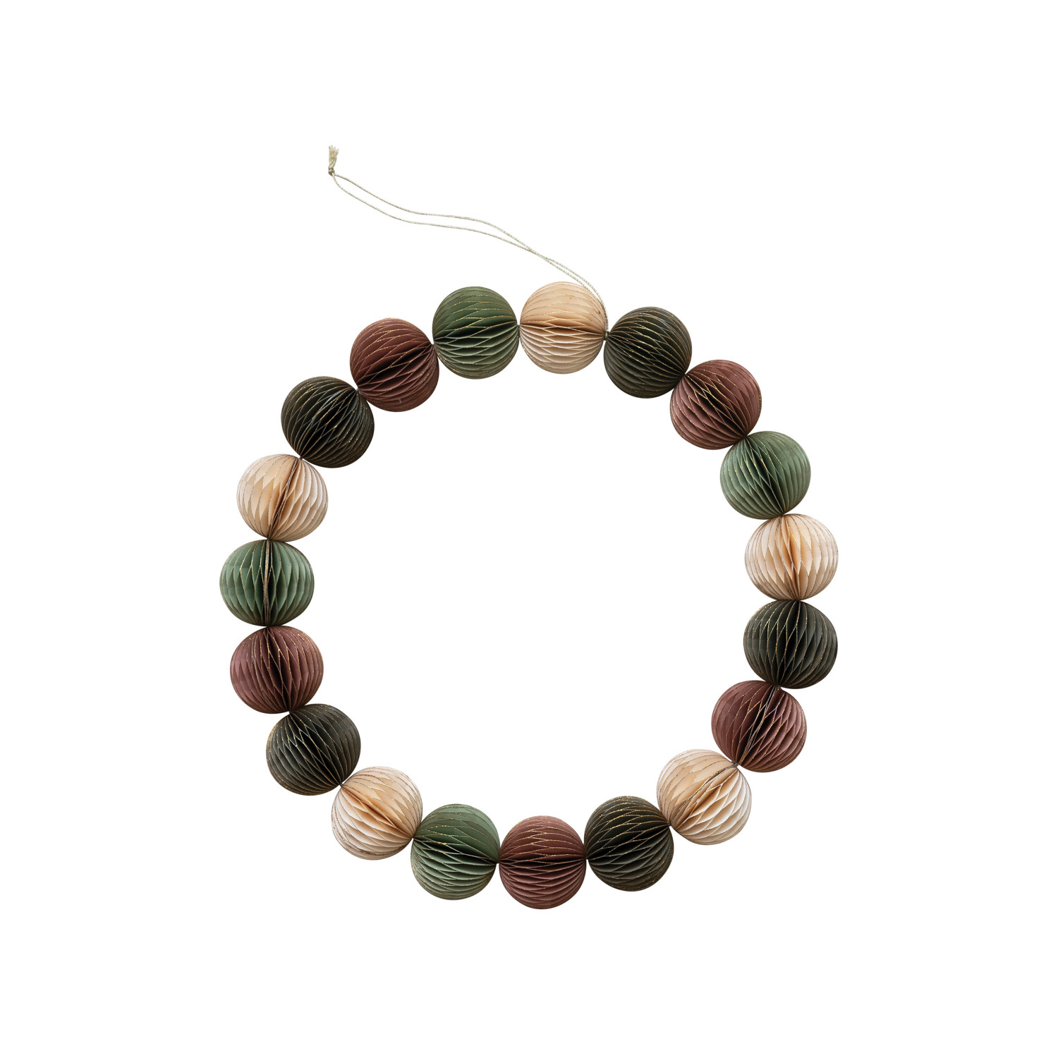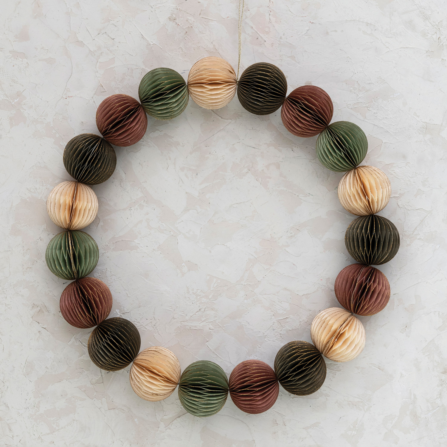 Catalog Name: 14" Round Handmade Recycled Paper Honeycomb Ball Wreath, Multi Color