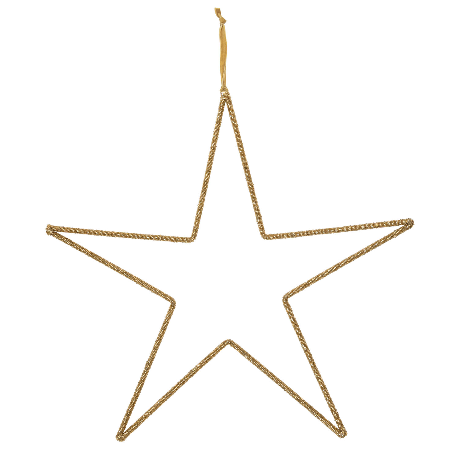 Catalog Name: 20"W x 20"H Oversized Hanging Wire & Glass Beaded Star w/ Cotton Velvet Ribbon, Gold Finish