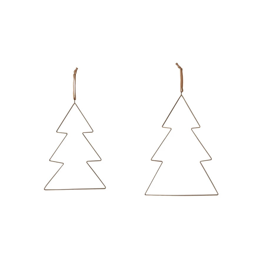 Hanging Metal Trees with Fabric Ribbon, Antique Brass Finish, Set of 2