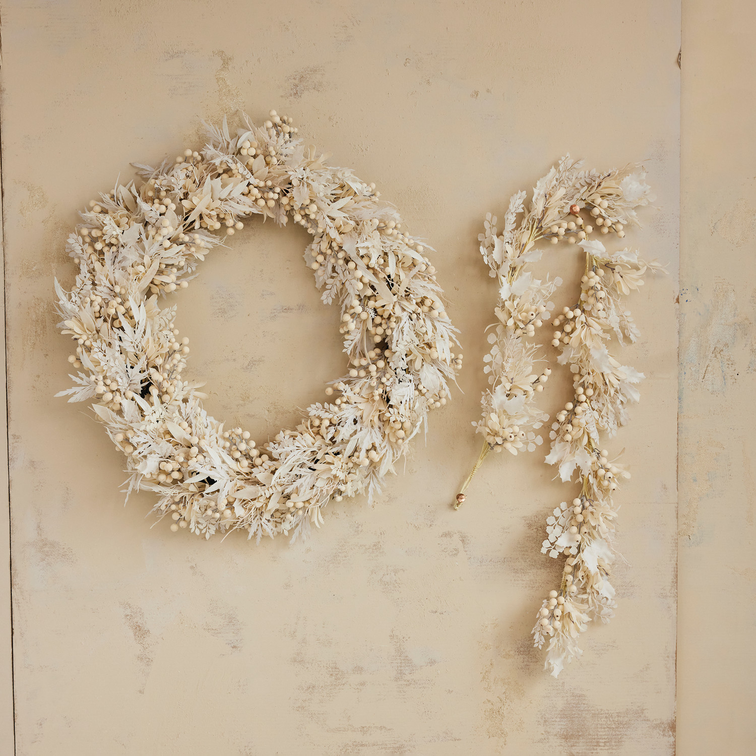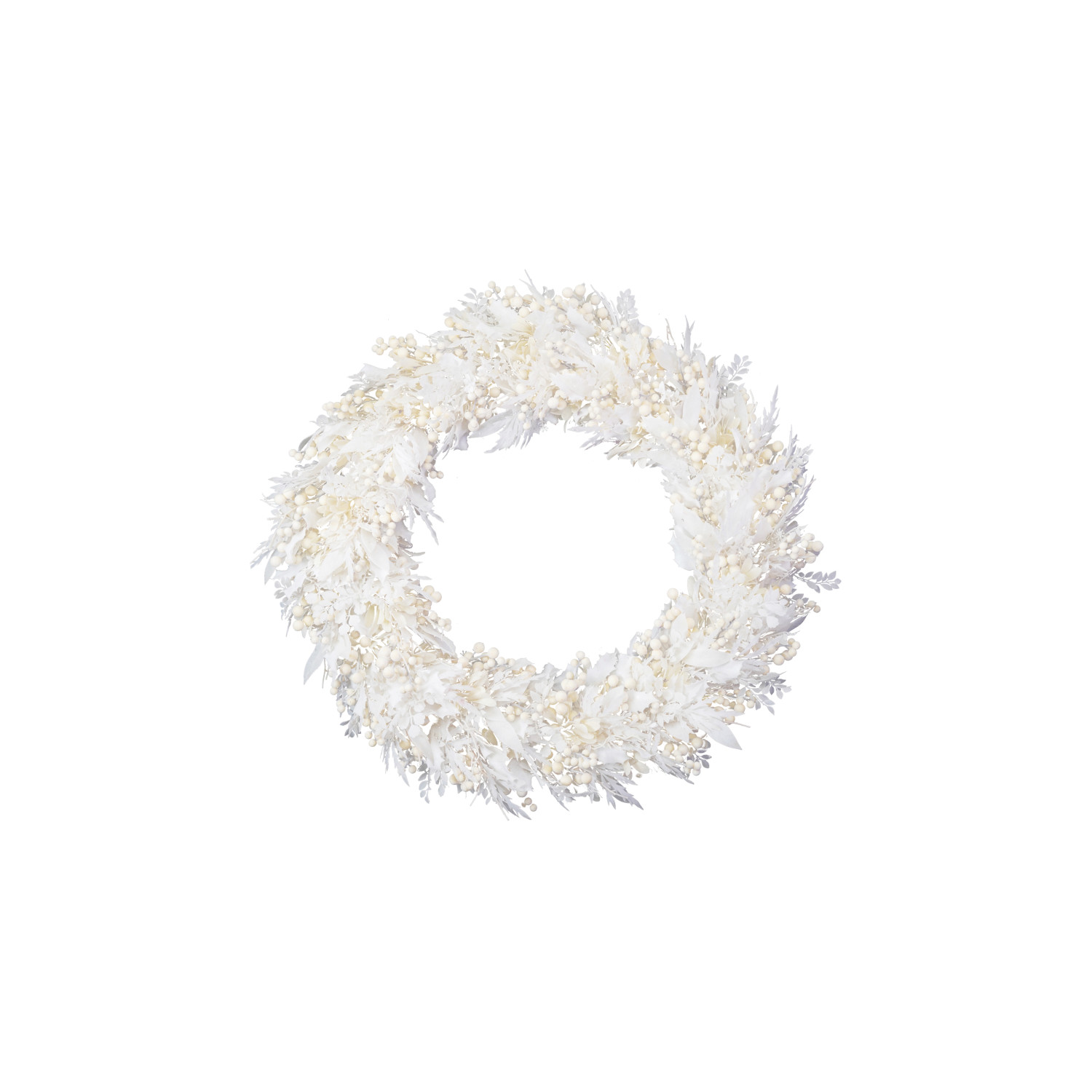 Catalog Name: 30" Round Faux Flocked Botanicals Wreath w/ Berries & Mistletoe, White & Cream Color