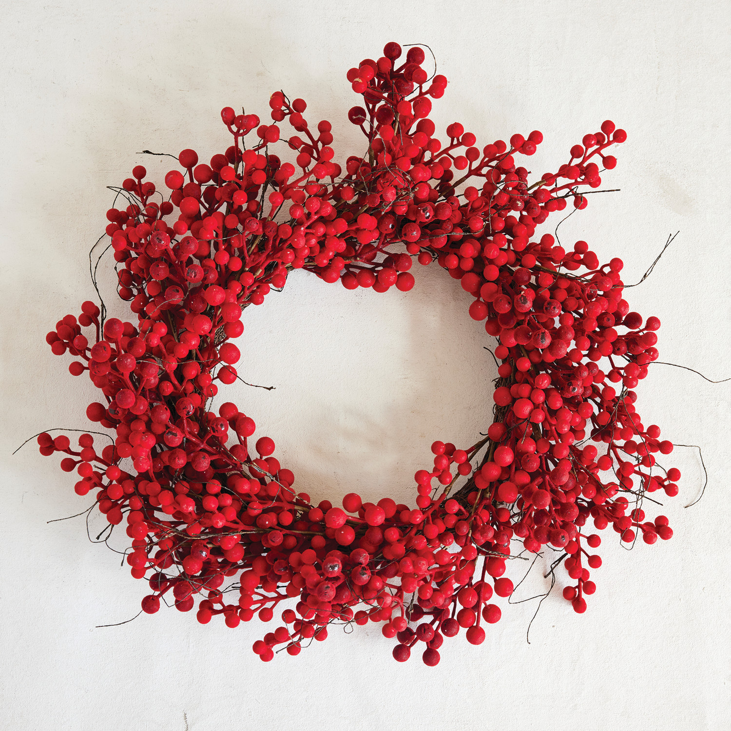 Catalog Name: 20" Round Faux Flocked Red Berry Wreath
