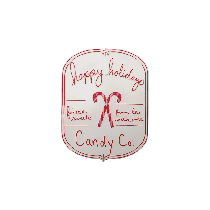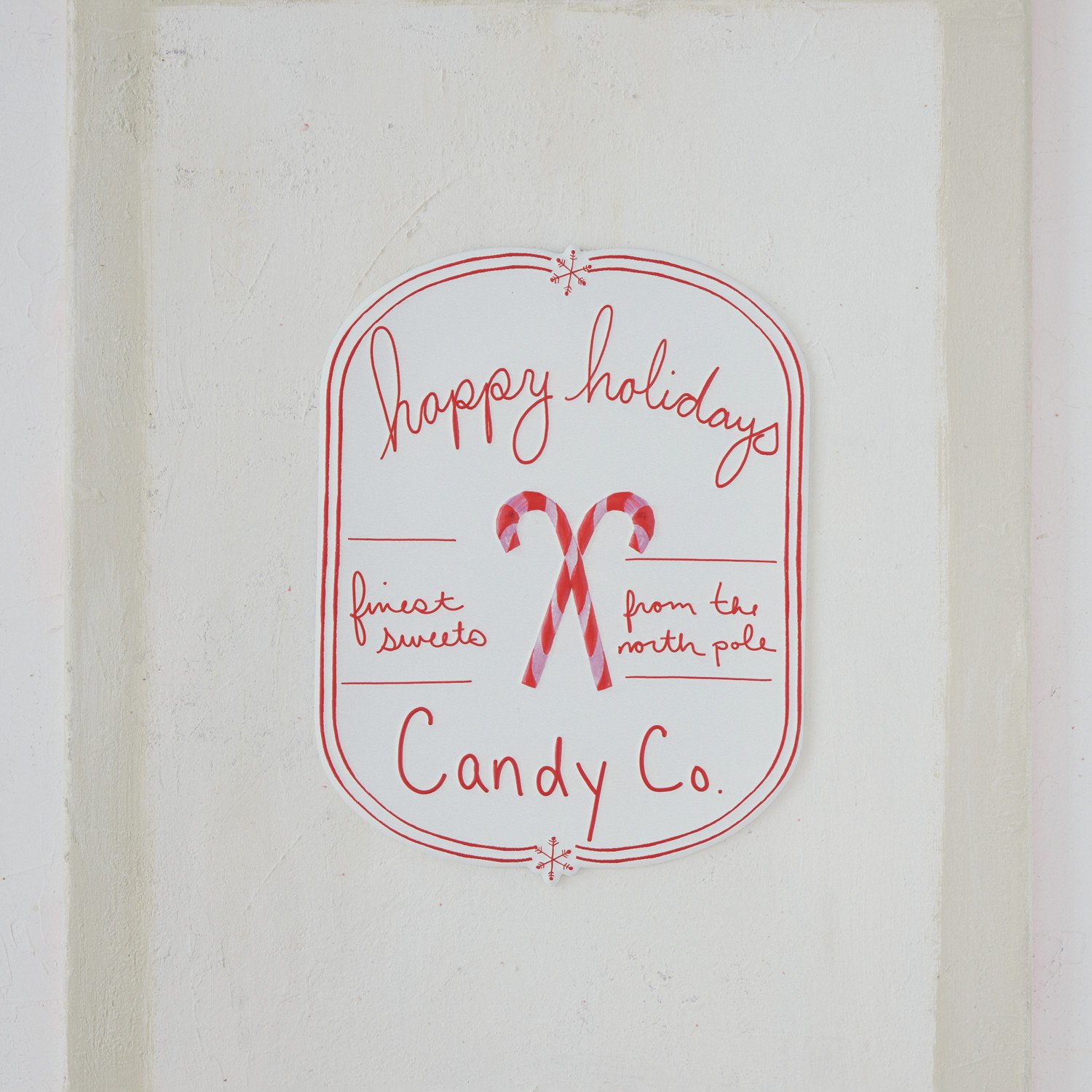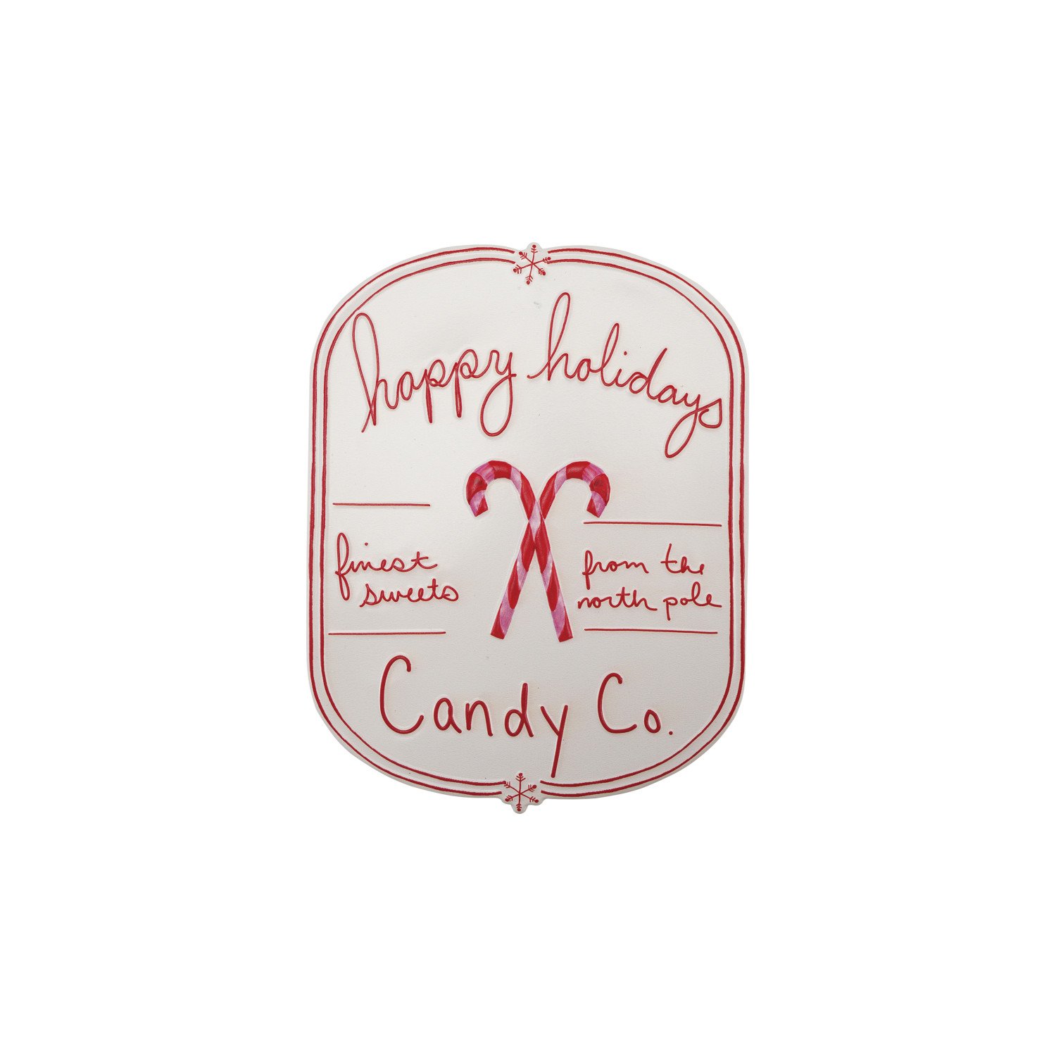 Embossed Metal Wall Decor with Candy Canes "Happy Holidays Candy Co.", White & Red ©