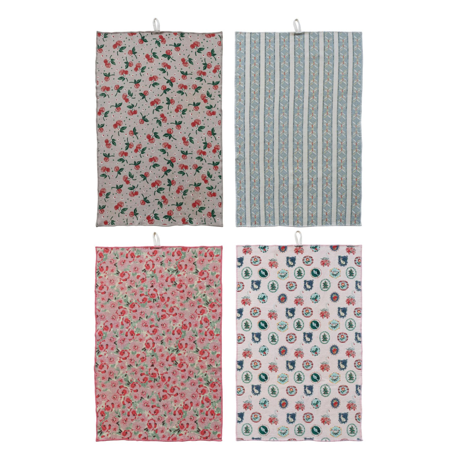 Catalog Name: 28"L x 18"W Cotton Printed Terry Cloth Tea Towel w/ Pattern & Stitched Edge, Multi Color, 4 Styles ©