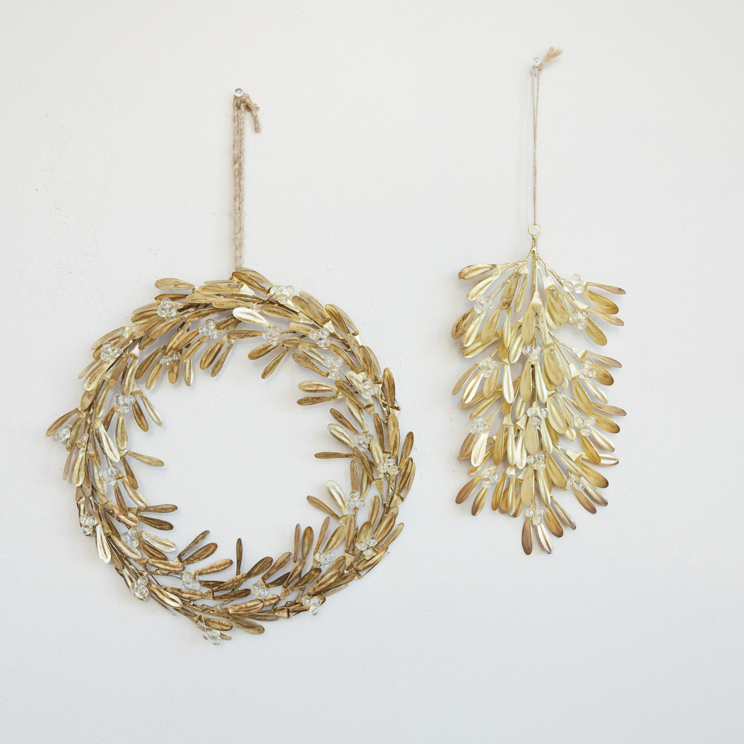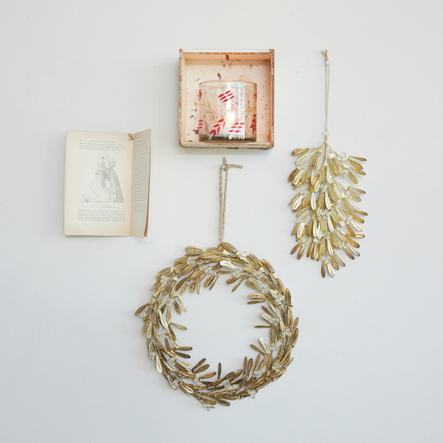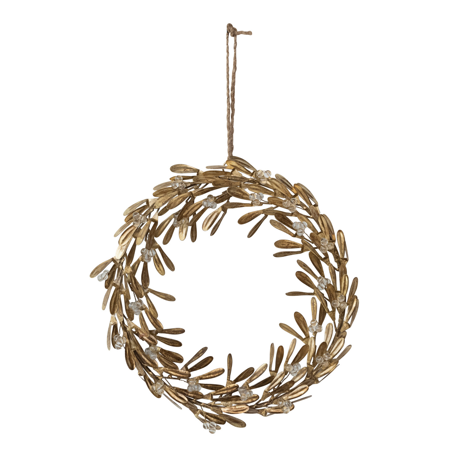 Metal & Acrylic Bead Mistletoe Wreath, Antique Brass Finish