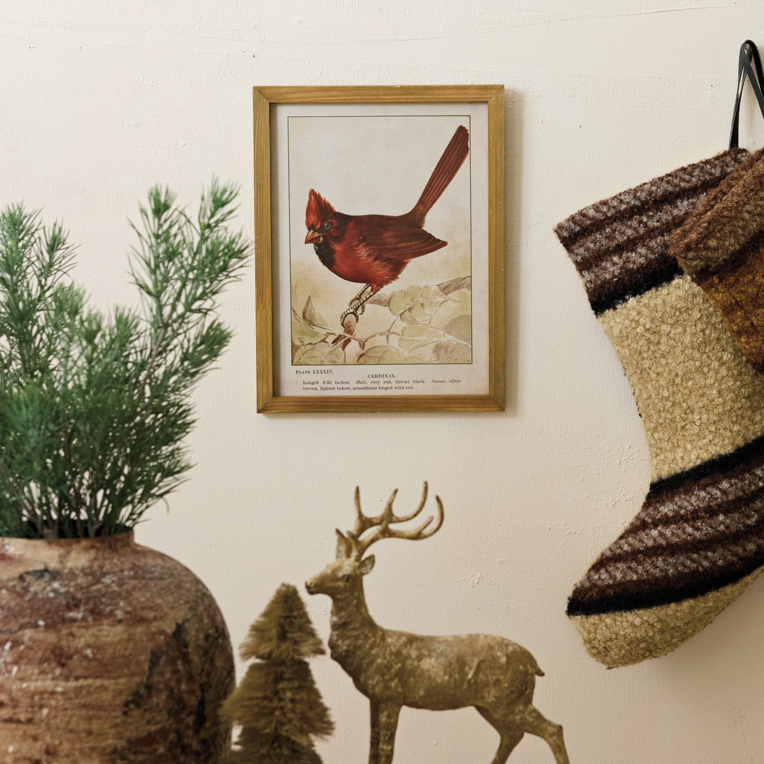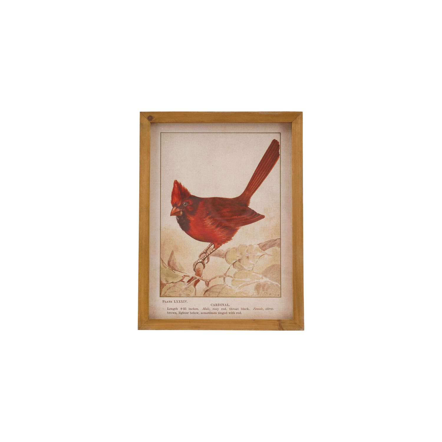 Wood Framed Glass Wall Decor with Vintage Reproduction Cardinal