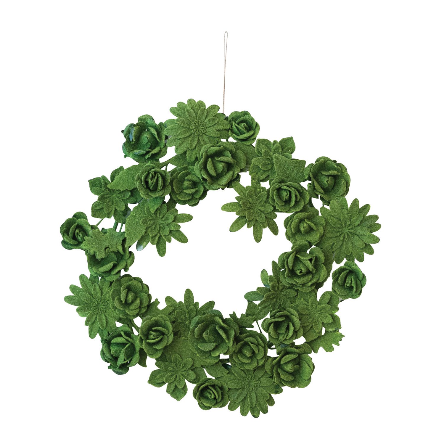 Catalog Name: 16" Round Flocked Metal Floral Wreath, Green