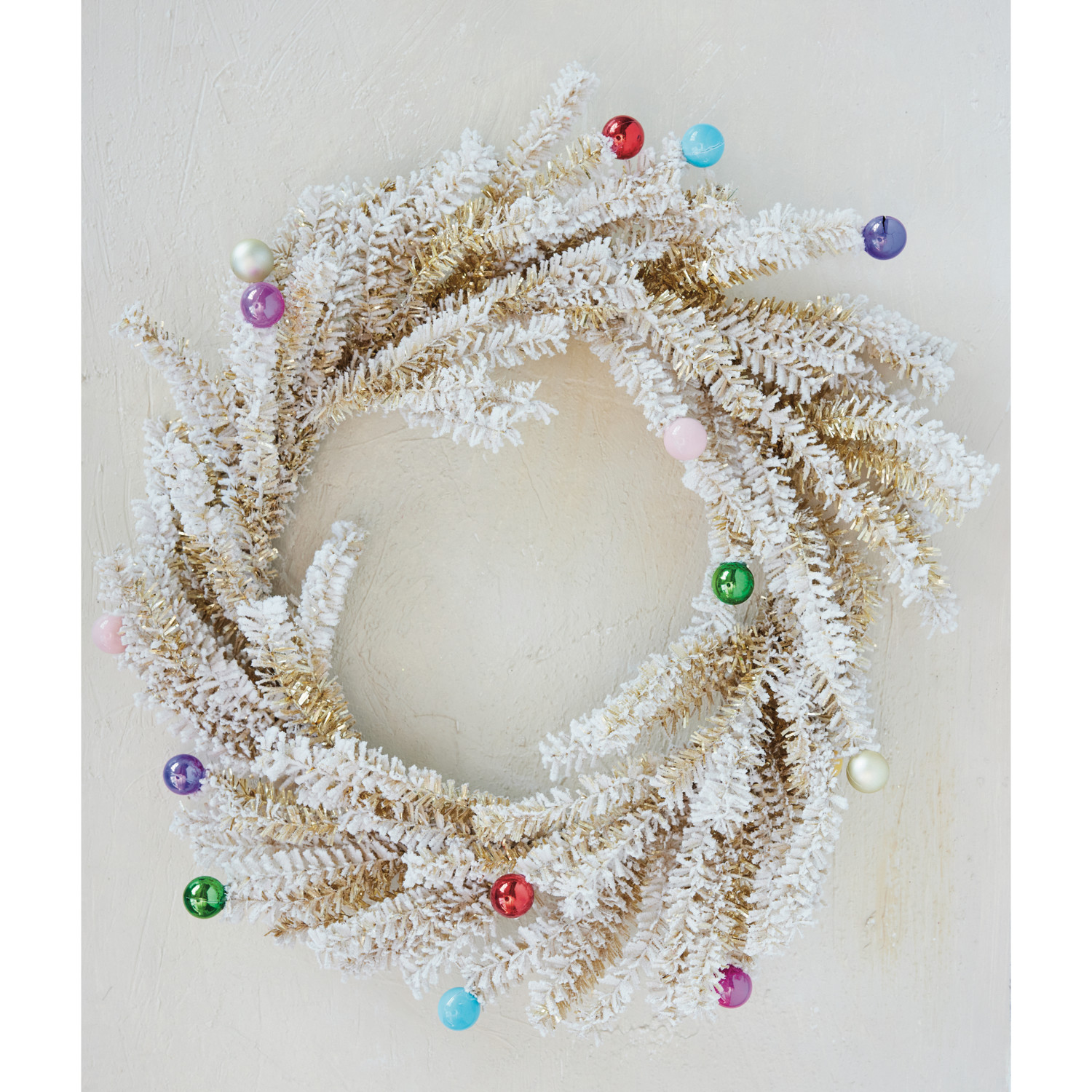 18" Round Plastic Wreath with Ball Ornaments, Snow Finish