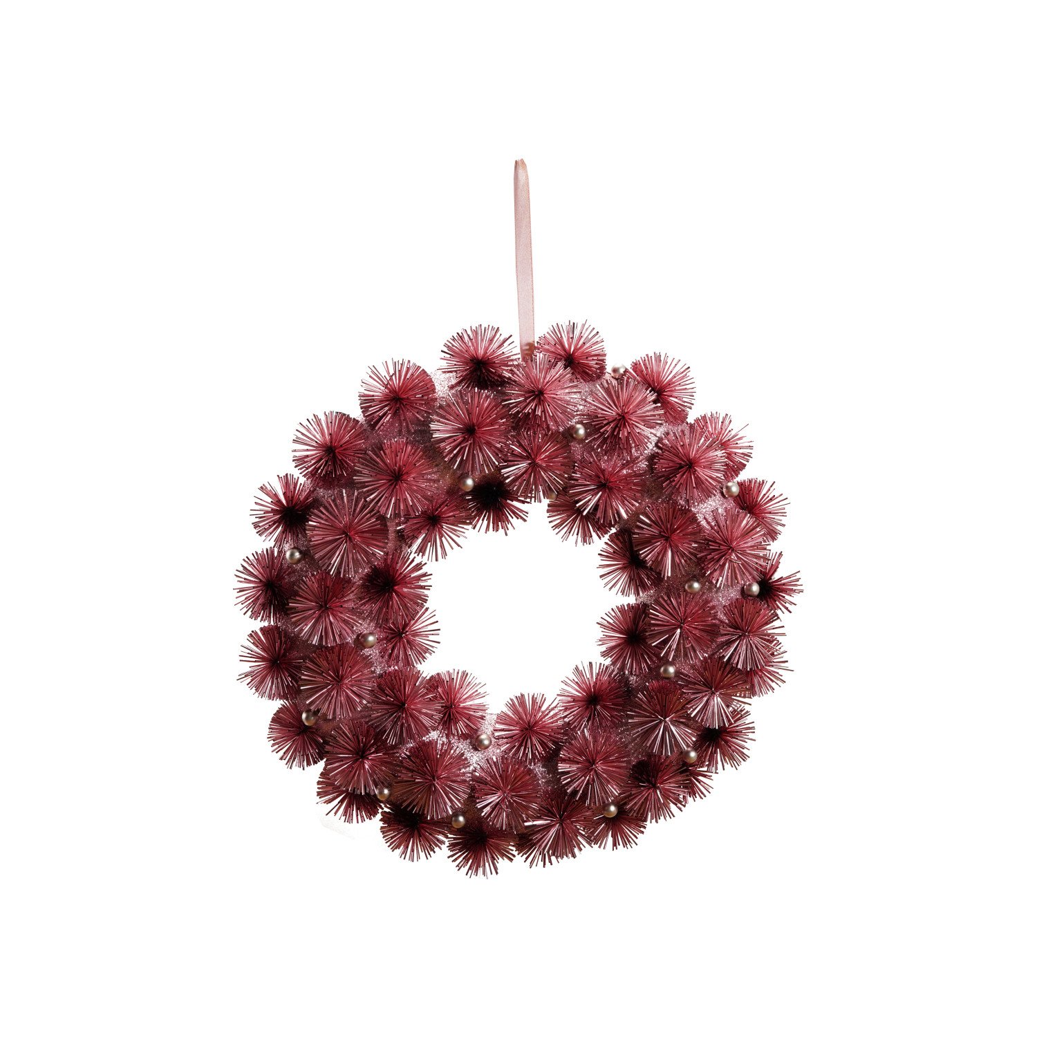 Catalog Name: 21-1/2" Round Plastic Tinsel Ball Wreath w/ Glitter & Silver Color Beads, Pink