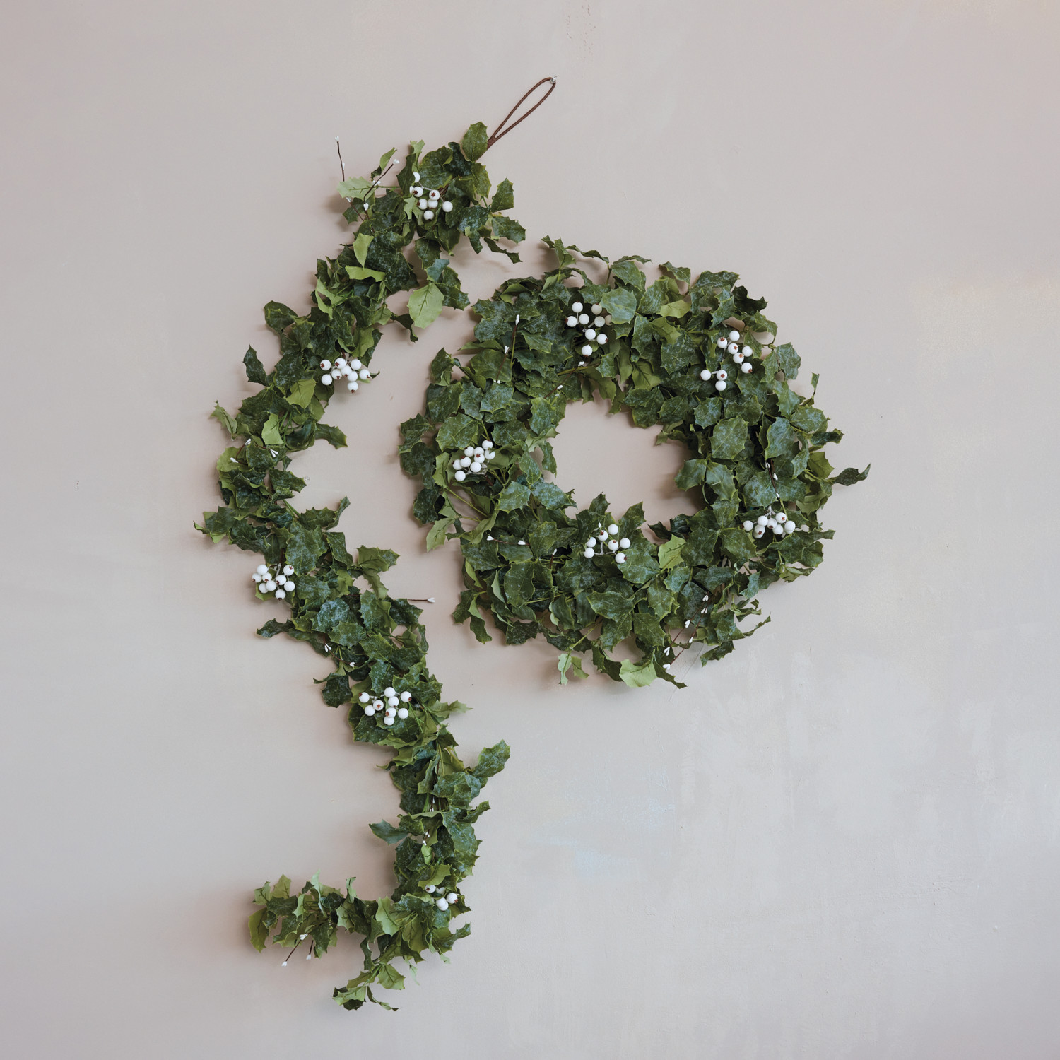 Catalog Name: 26" Round Faux Holly Wreath w/ White Berries