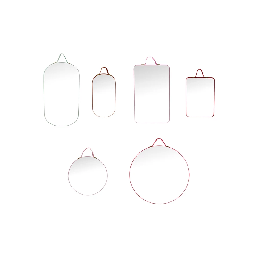 Velvet Framed Wall Mirrors with Hangers, Pink, Green & Red, Set of 6