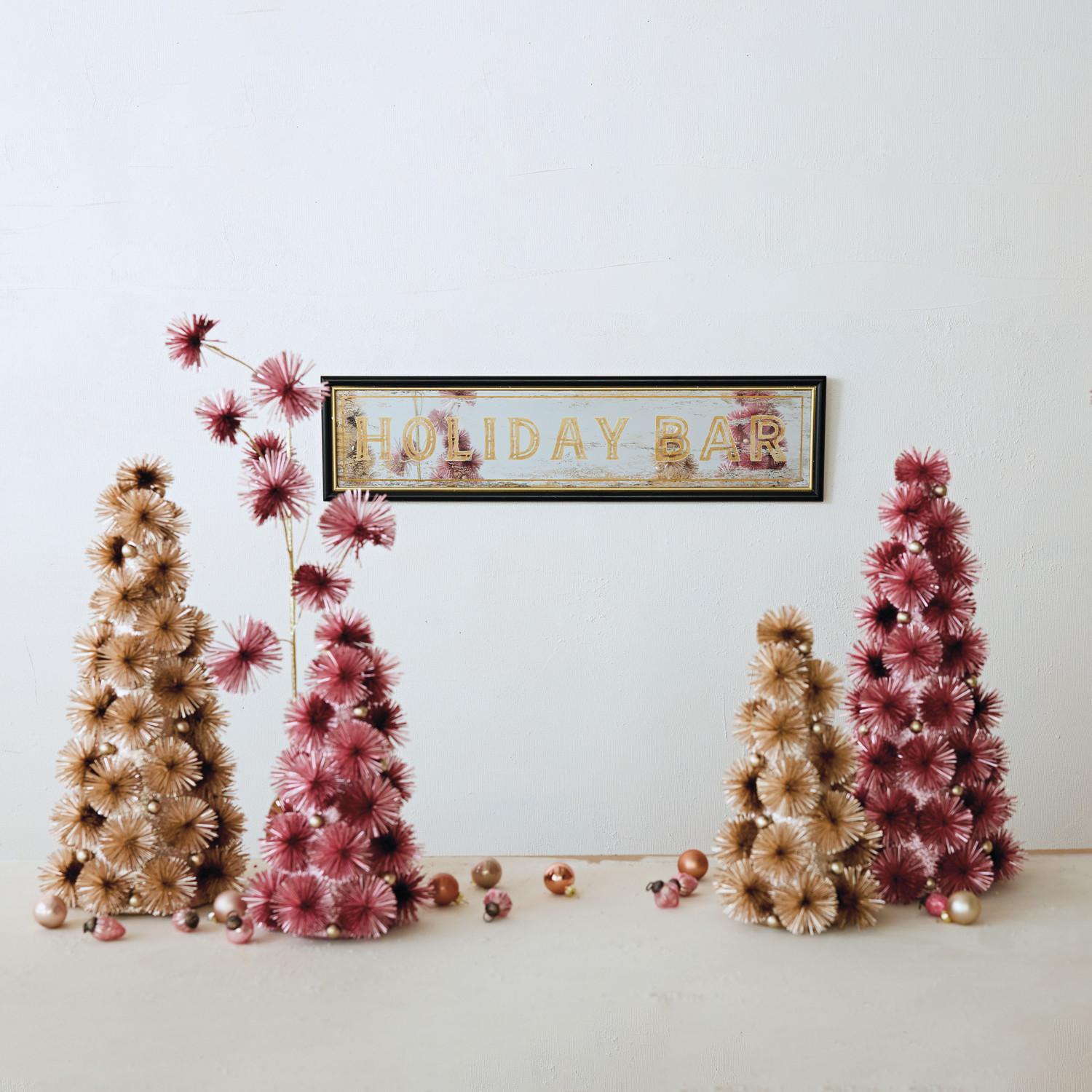 Catalog Name: 30"W x 7-1/2"H Wood Framed Wall Décor w/ Antiqued Mirror "Holiday Bar", Black & Gold Finish ©