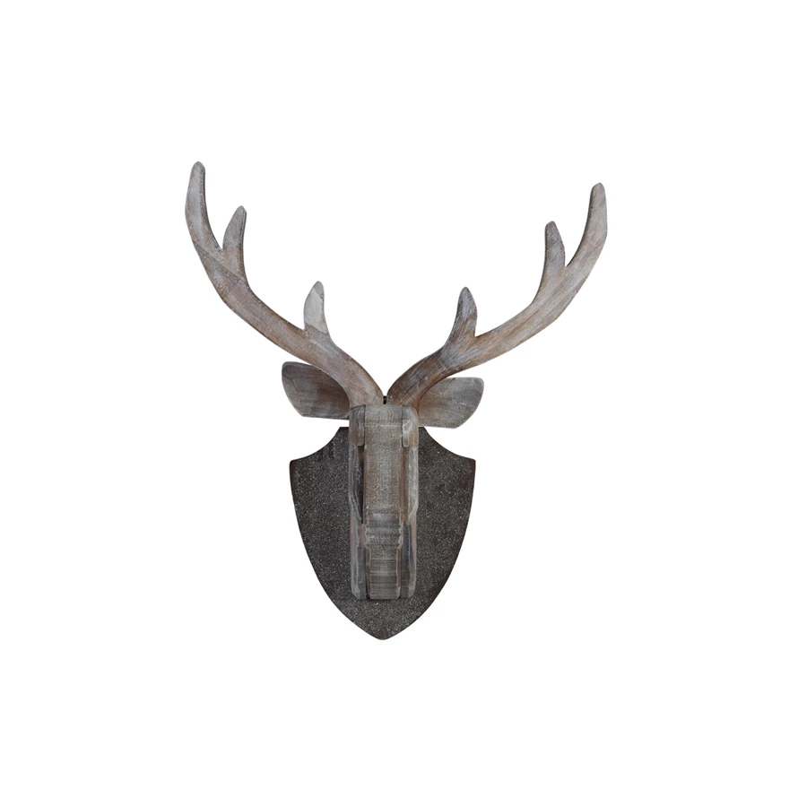 Catalog Name: 17-1/4"W x 8-1/2"D x 21-1/4"H Wood Deer Trophy Wall Décor w/ Glitter, Distressed Finish, KD
