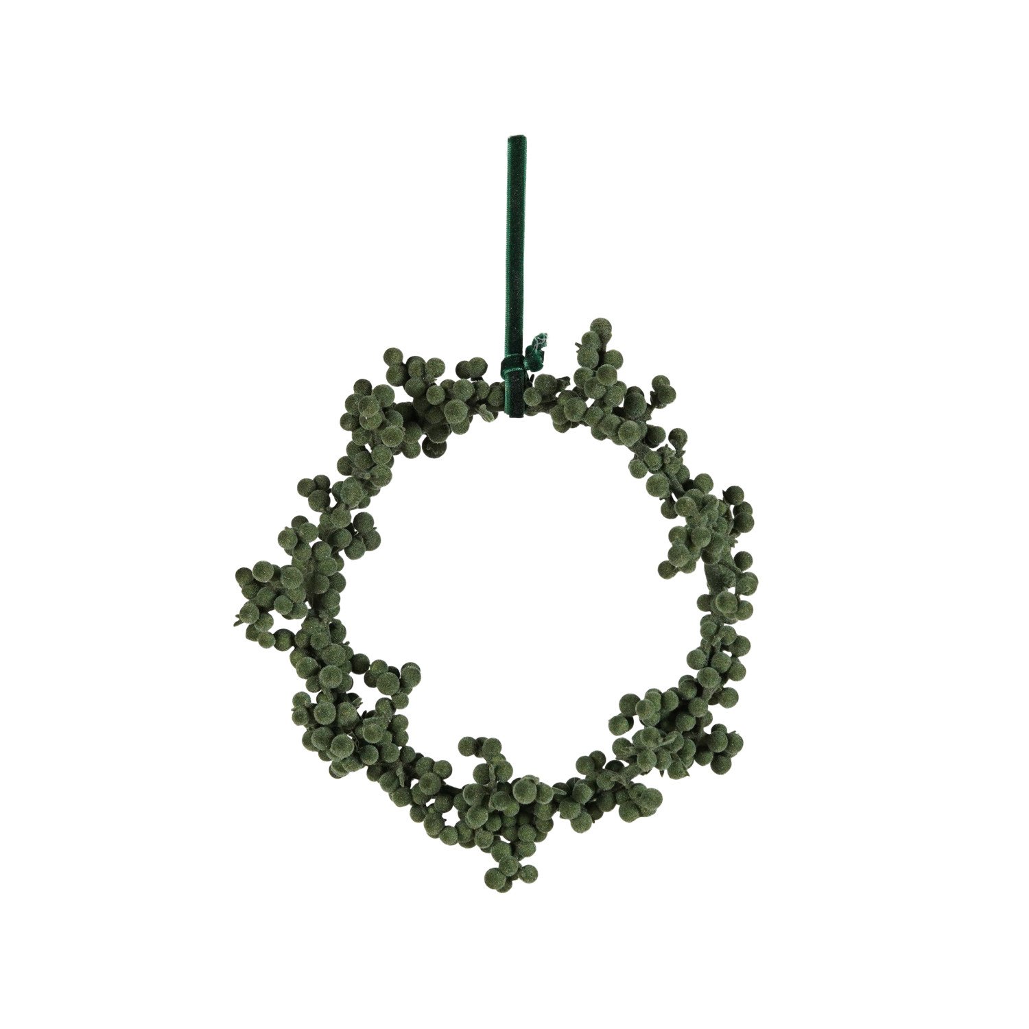 8" Round Flocked Foam Ball Wreath with Velvet Ribbon Hanger, Green
