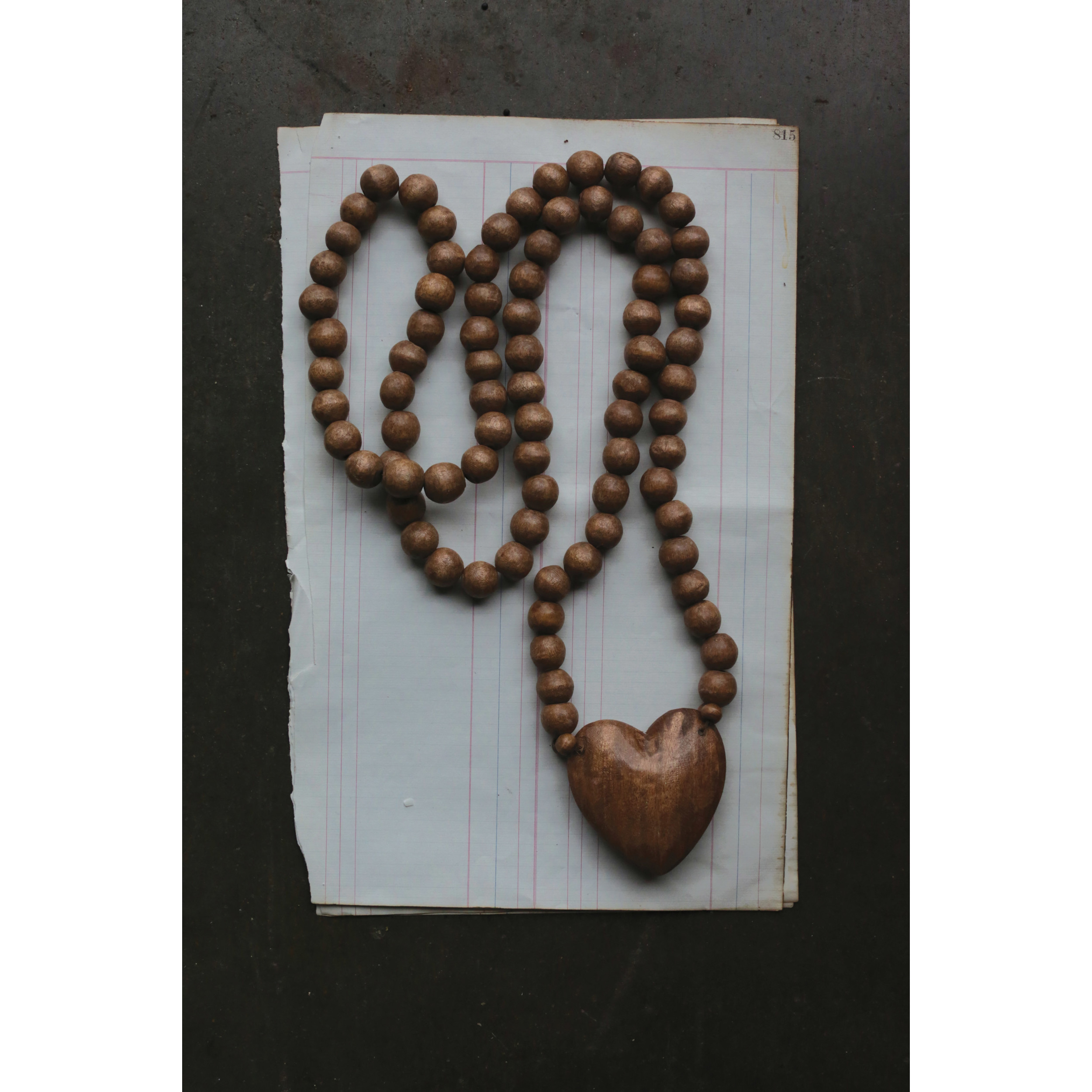 Catalog Name: 36"L Hand-Carved Mango Wood Rosary w/ Heart, Stained Finish