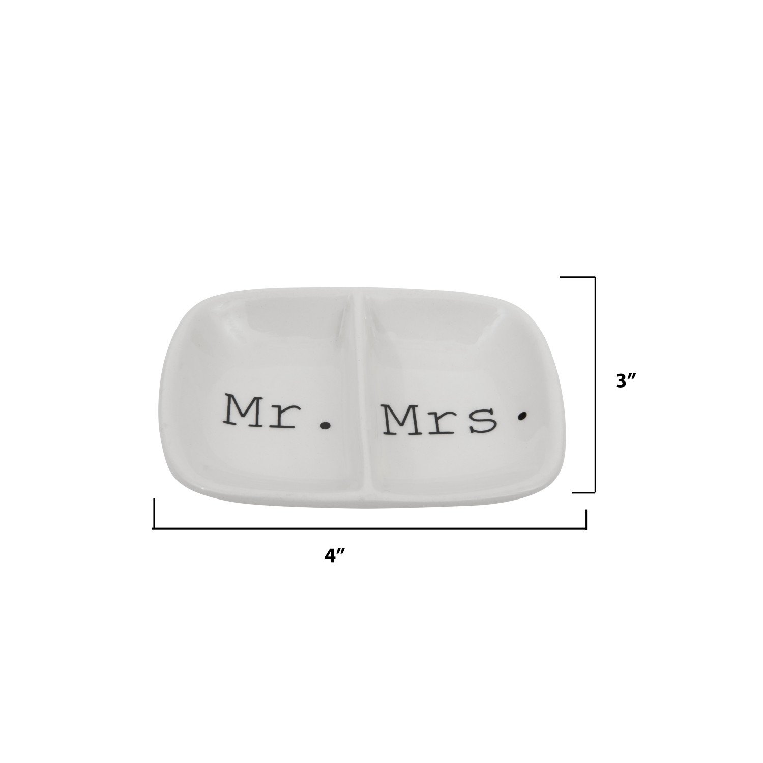 Catalog Name: 3-1/2"L x 2-3/4"W Ceramic 2-Section Dish "Mr./Mrs.", White