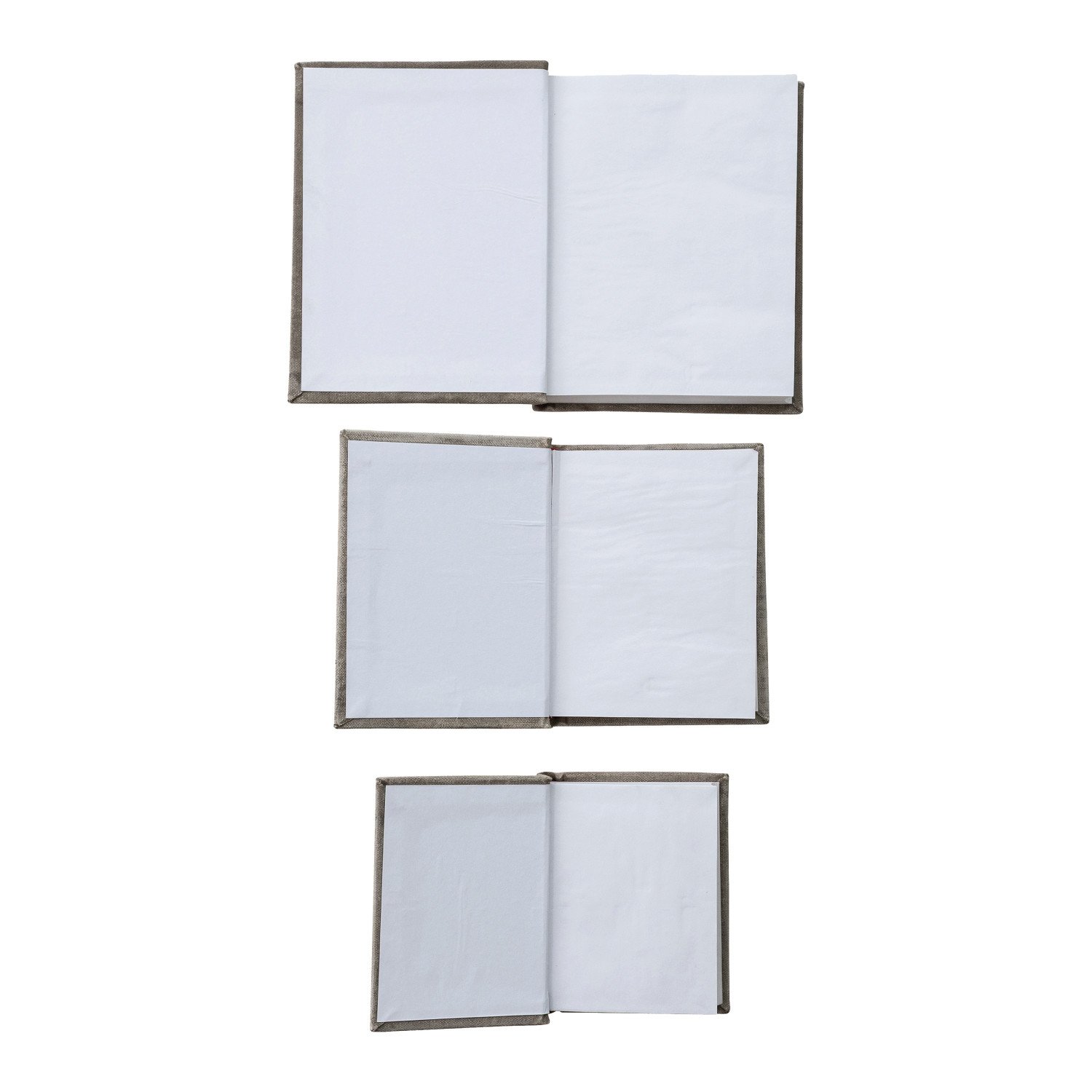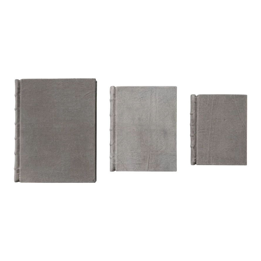 Catalog Name: 10-1/2"L x 8-1/4"W, 8-1/2"L x 6-3/4"W & 7-1/4"L x 5-1/2"W Stonewashed Canvas Bound Paper Notebooks w/ 198 & 188 Unruled Pages, Antique Grey, Set of 3