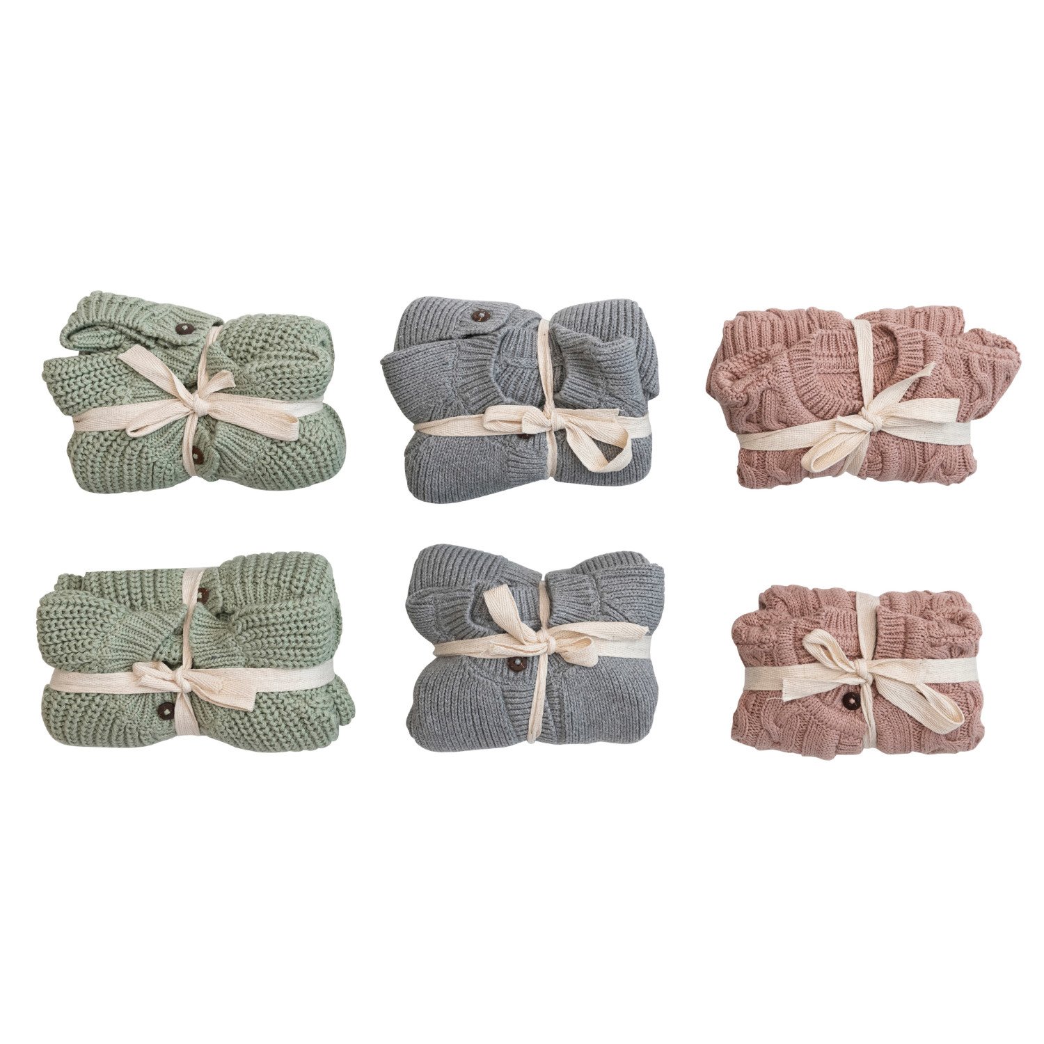 Cotton Knit Baby Sweater w/ Wood Buttons, 3 Colors, 3 Styles