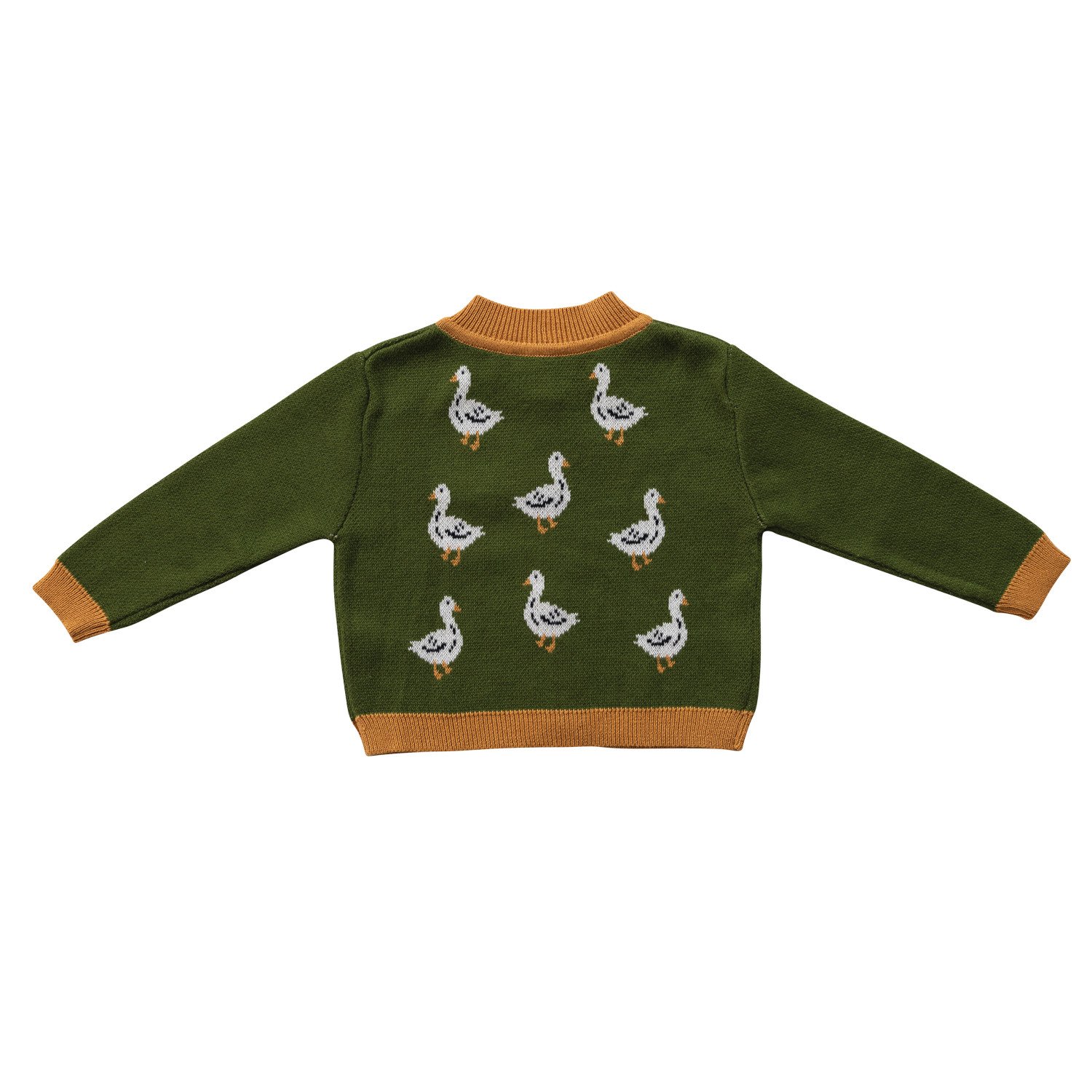 Catalog Name: Cotton Knit Baby Cardigan Sweater w/ Wood Buttons & Ducks, Multi Color, 3 Sizes, Each Tied w/ Twill Tape (0-3 Months, 3-6 Months, 6-9 Months)