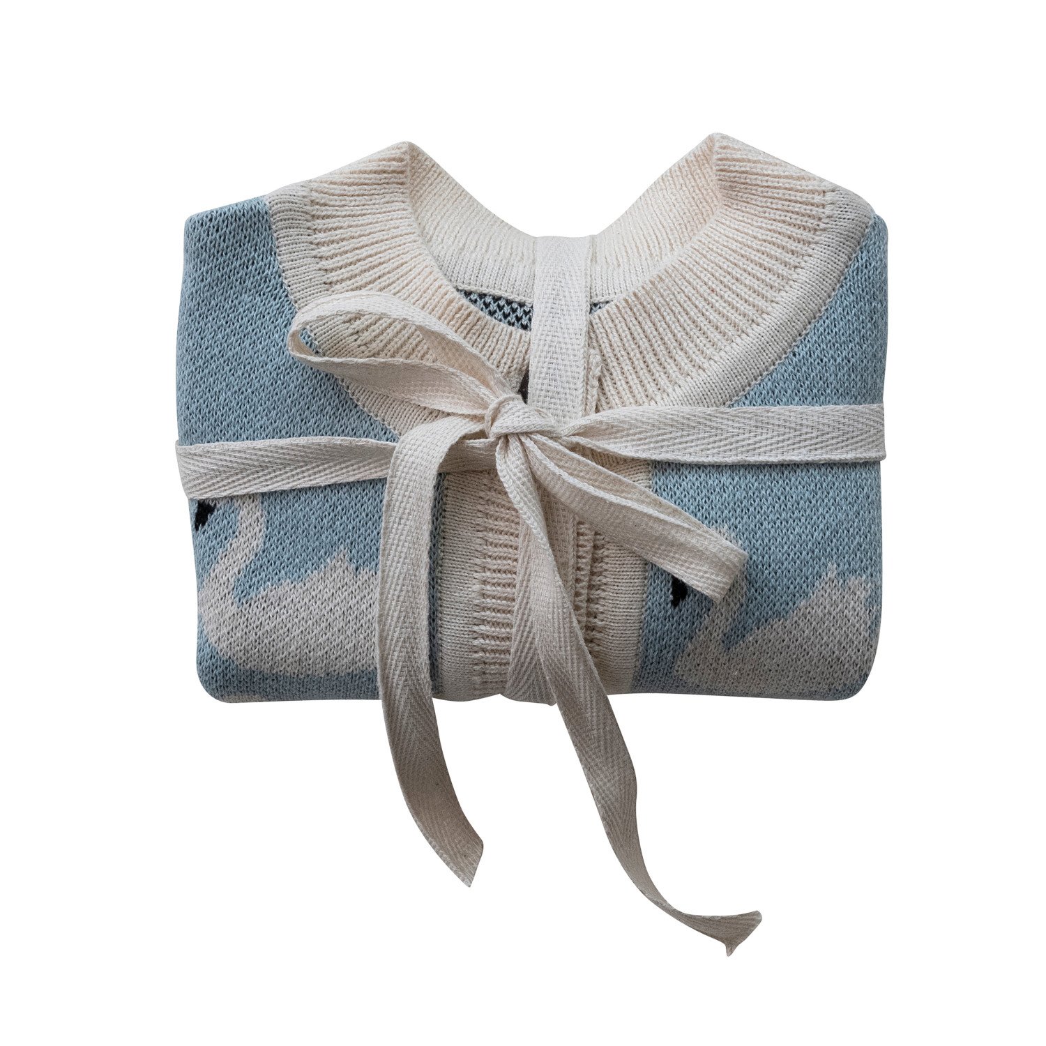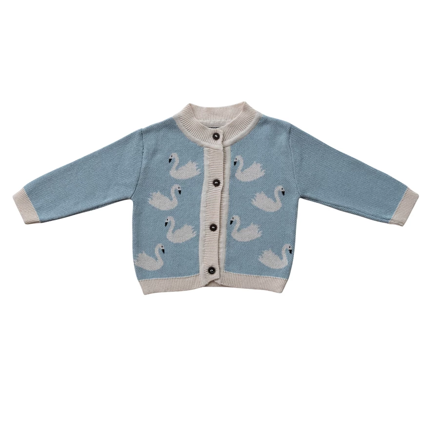 Catalog Name: Cotton Knit Baby Cardigan Sweater w/ Wood Buttons & Swans, Multi Color, 3 Sizes, Each Tied w/ Twill Tape (0-3 Months, 3-6 Months, 6-9 Months)