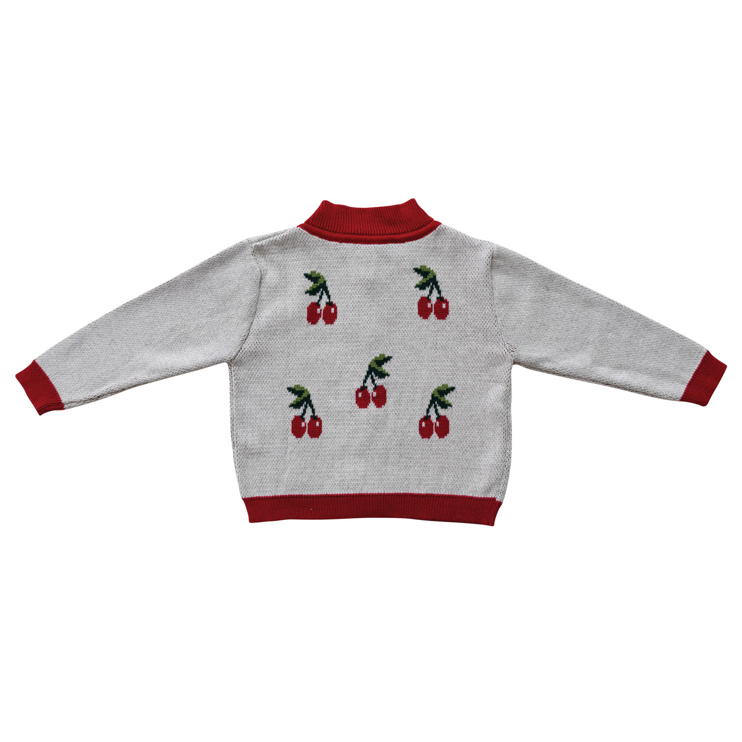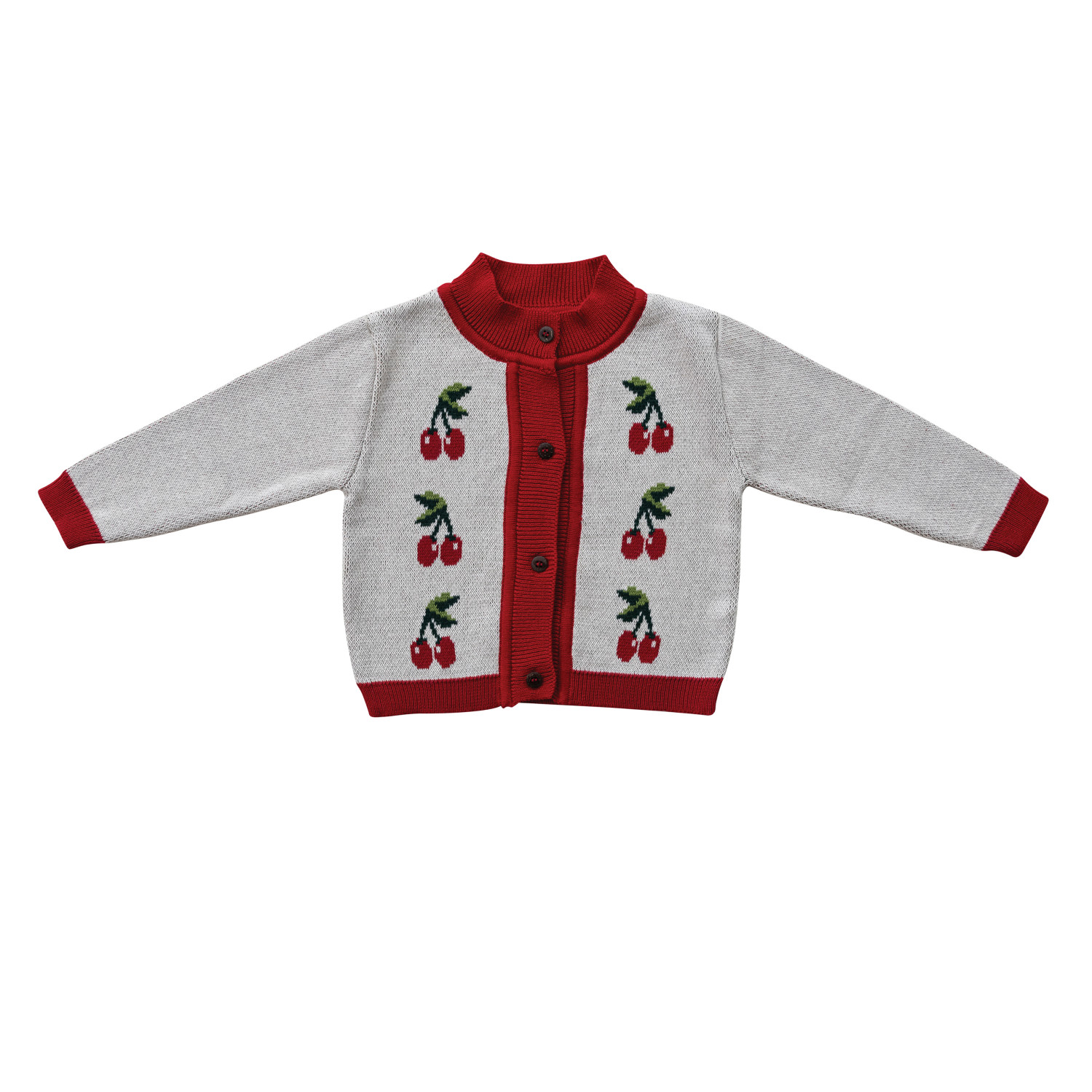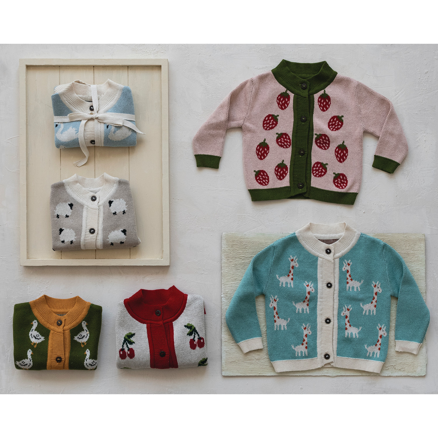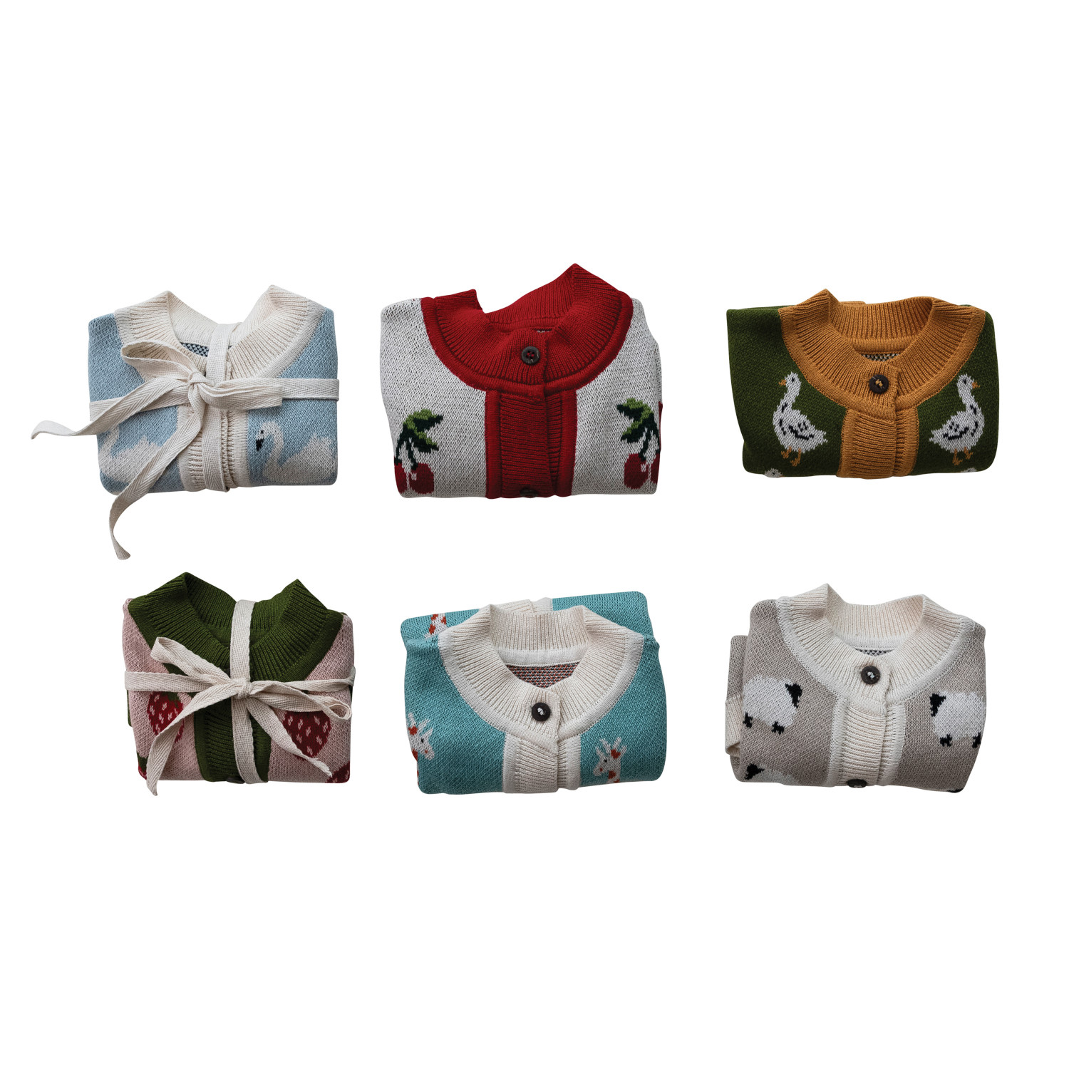 Catalog Name: Cotton Knit Baby Cardigan Sweater w/ Wood Buttons & Cherries, Multi Color, 3 Sizes, Each Tied w/ Twill Tape (0-3 Months, 3-6 Months, 6-9 Months)