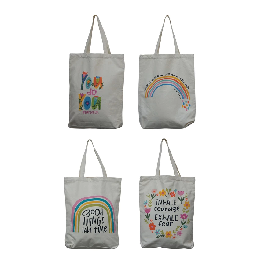 Catalog Name: 14-1/2"L x 18-1/2"H Cotton Canvas Tote Bag w/ Motivational Saying, Handles & Interior Pocket, Multi Color, 4 Styles ©
