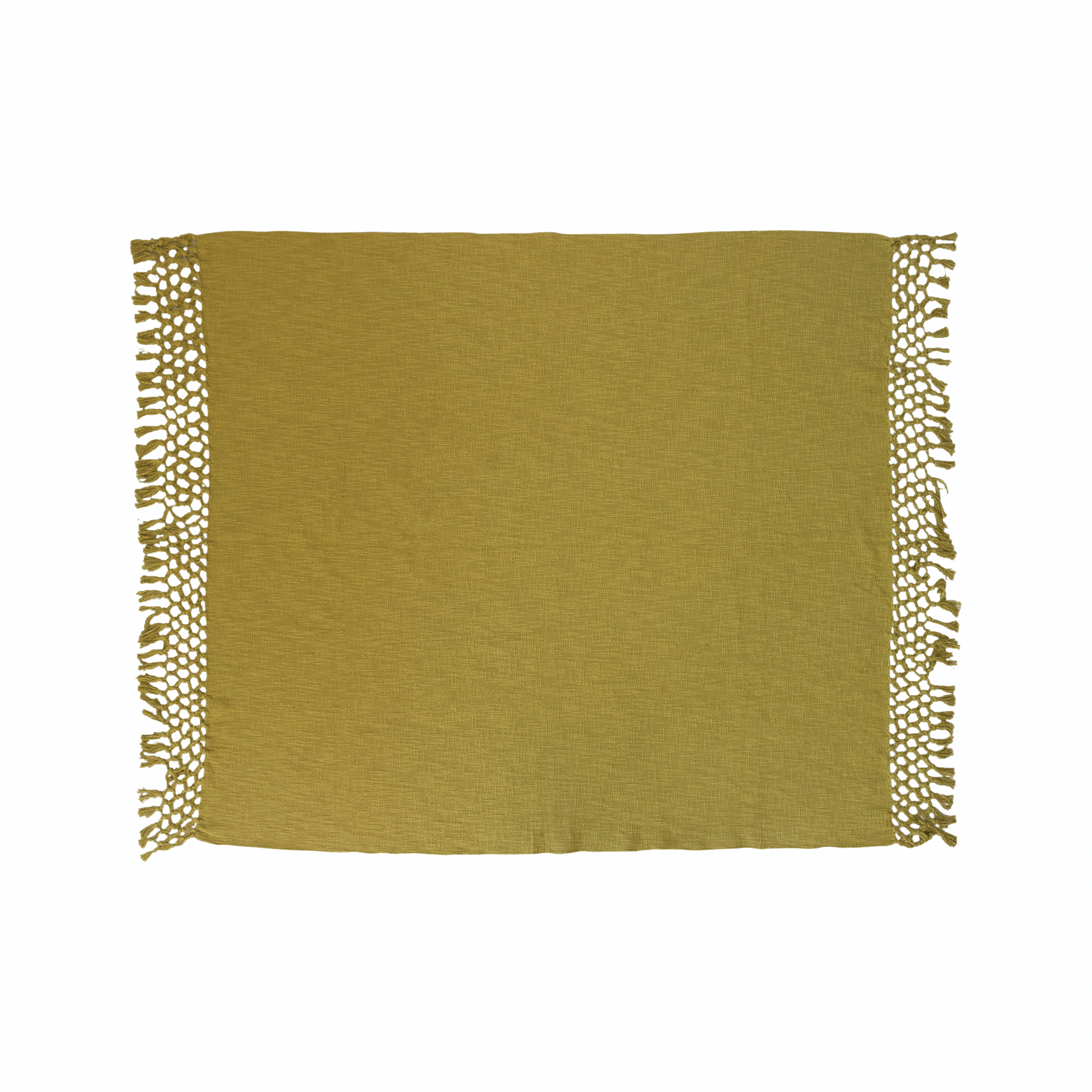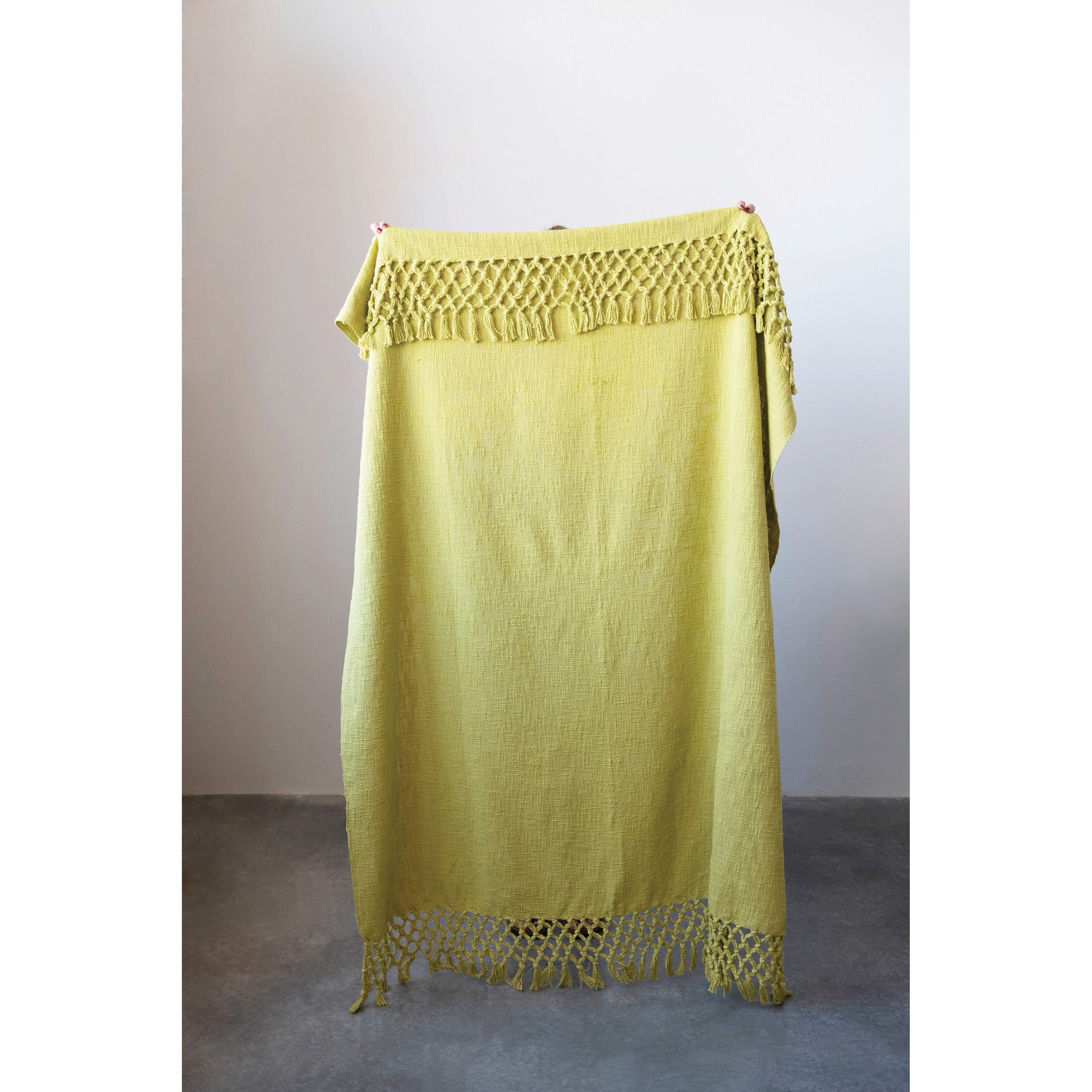 Catalog Name: 60"L x 50"W Woven Cotton Throw w/ Crochet & Fringe, Chartreuse