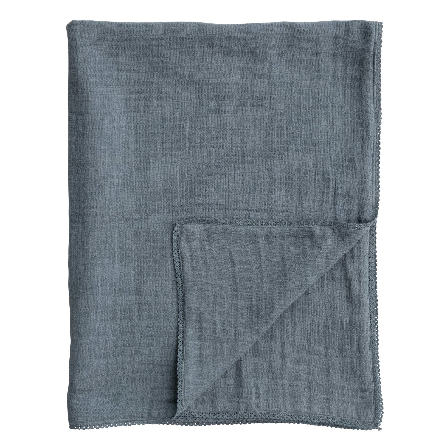 Catalog Name: 40"L x 32"W Cotton Double Cloth Baby Blanket w/ Trim in Bag, Blue